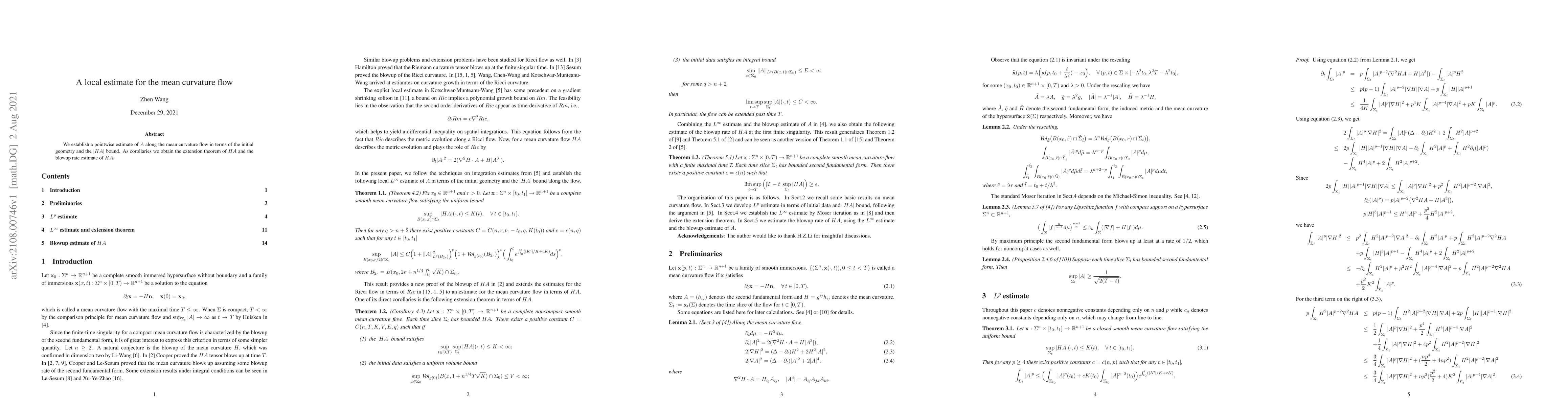 This paper provides a pointwise estimate for the mean curvature flow's mean curvature, linking it to initial geometry and the bound of the Hessian. It also yields the extension theorem and blowup rate estimate for the mean curvature.