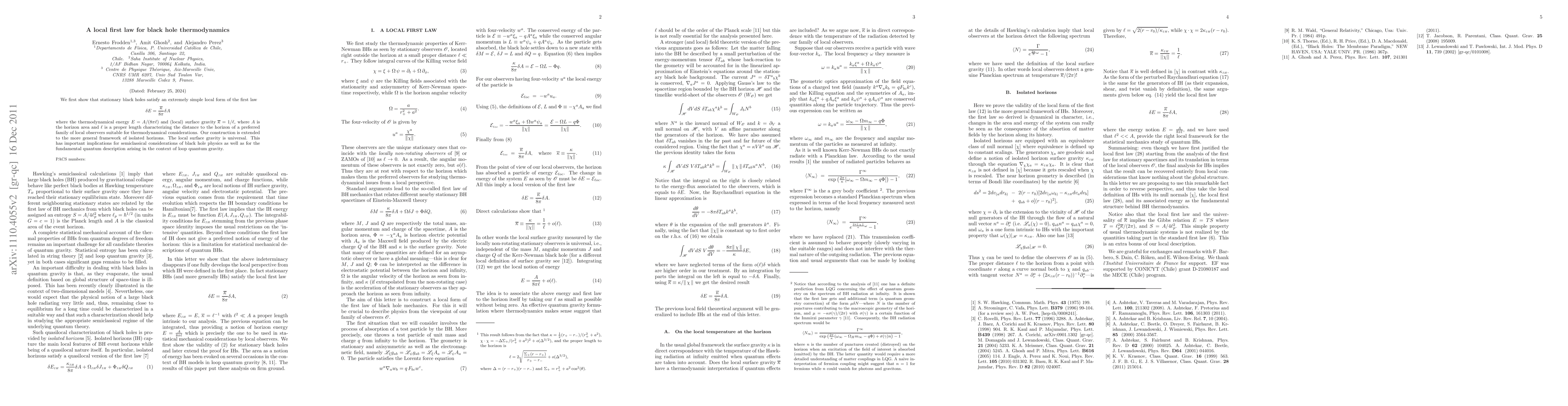 We first show that stationary black holes satisfy an extremely simple local form of the first law \delta E=\kappa(l) \delta A/(8 \pi) where the thermodynamical energy E=A/(8\pi l) and (local) surface gravity \kappa(l)=1/l, where A is the horizon area and l is a proper length characterizing the distance to the horizon of a preferred family of local observers suitable for thermodynamical considerations. Our construction is extended to the more general framework of isolated horizons. The local surface gravity is universal. This has important implications for semiclassical considerations of black hole physics as well as for the fundamental quantum description arising in the context of loop quantum gravity.
