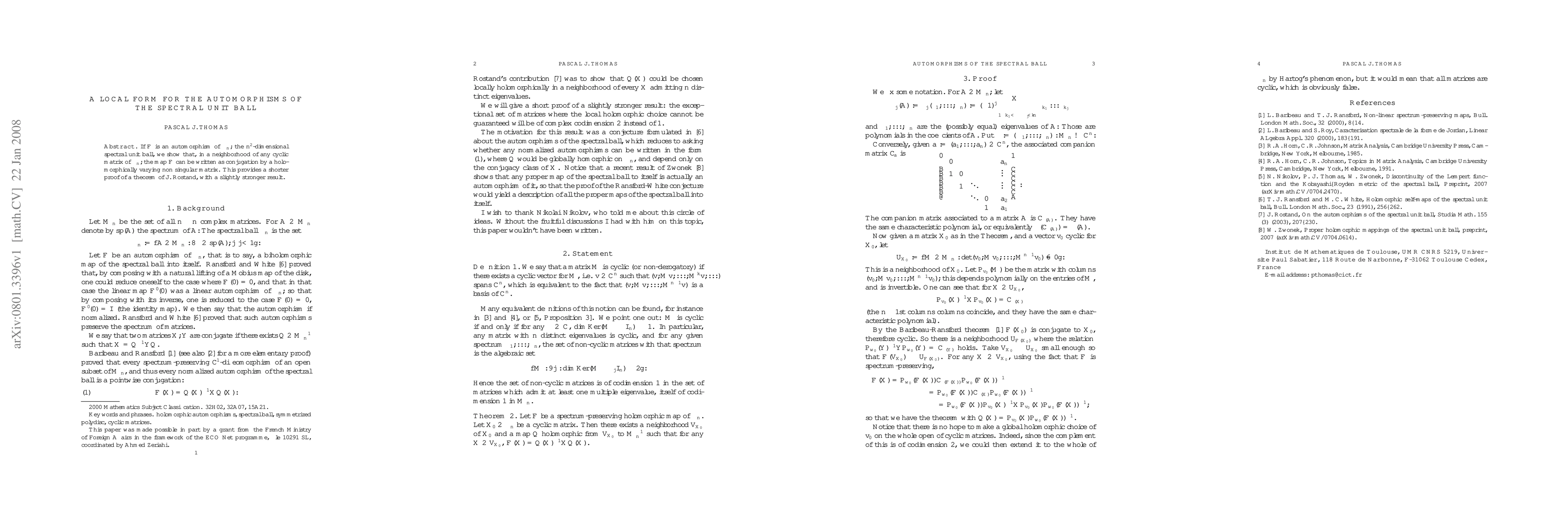 This paper demonstrates that any automorphism F of the spectral unit ball can be locally represented as conjugation by a holomorphically varying non-singular matrix near any cyclic matrix, offering a more concise proof of a theorem by J. Rostand with enhanced results.