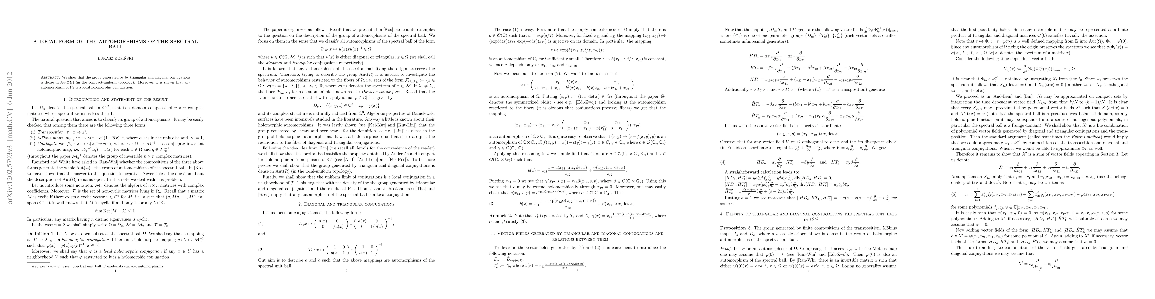 Summary: The paper demonstrates that the group generated by triangular and diagonal conjugations is dense in the automorphism group of the spectral unit ball $\aut(\Omega_2)$. It also proves that any automorphism of $\Omega_2$ can be expressed as a local holomorphic conjugation.