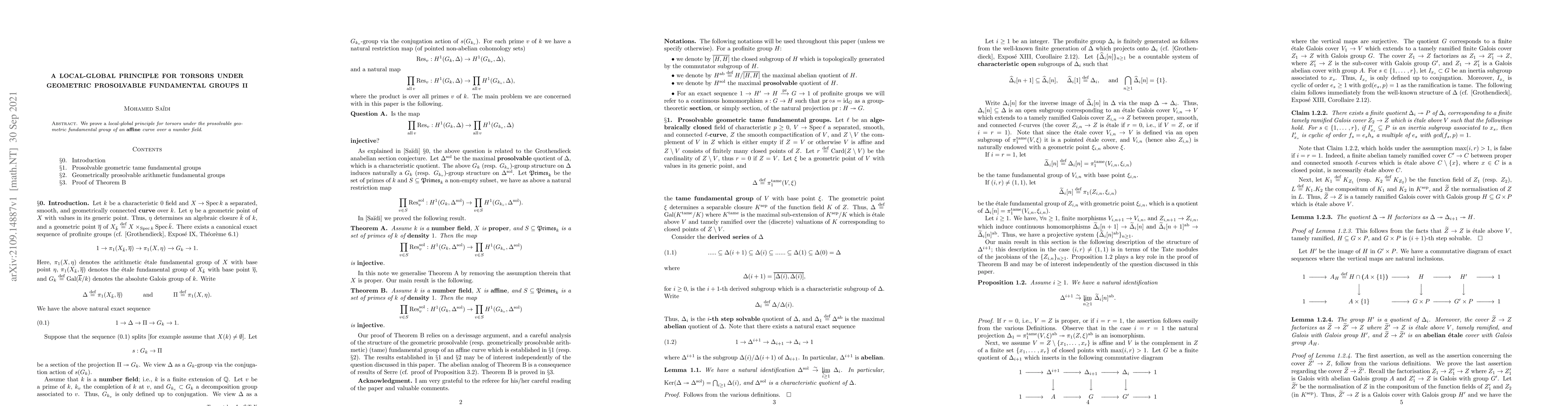 We prove a local-global principle for torsors under the prosolvable geometric fundamental group of an affine curve over a number field.