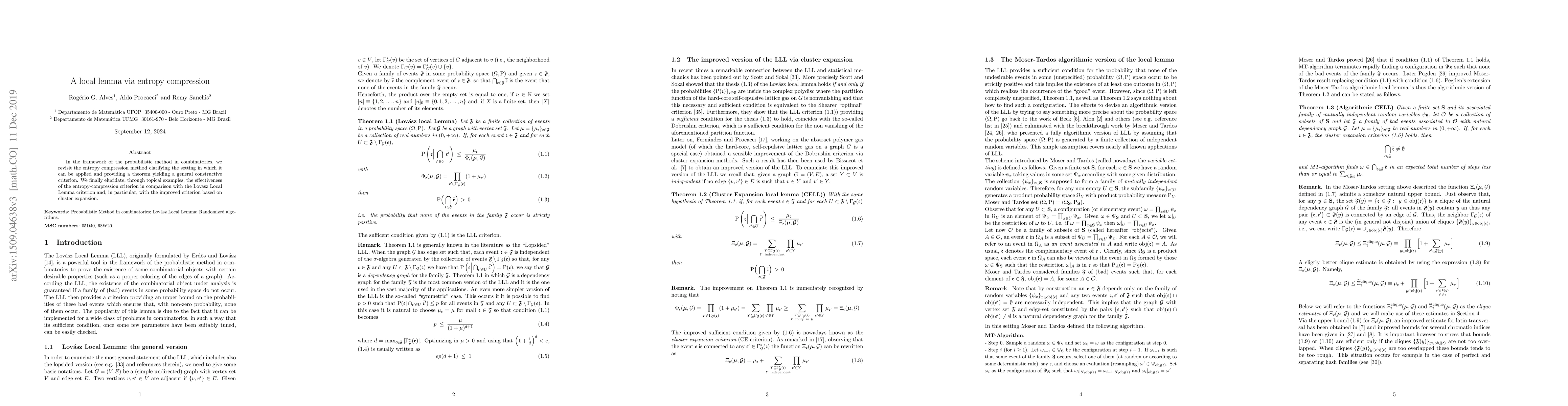 This paper revisits the entropy compression method within the probabilistic method, offering a general constructive criterion and demonstrating its effectiveness through examples compared to the Lovasz Local Lemma and cluster expansion criteria.