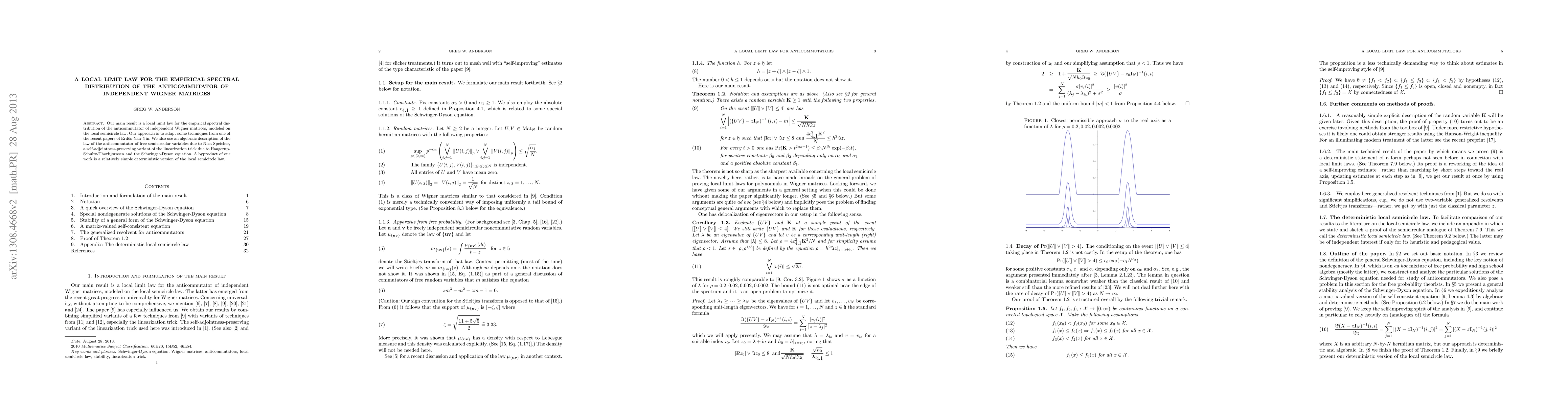 Our main result is a local limit law for the empirical spectral distribution of the anticommutator of independent Wigner matrices, modeled on the local semicircle law. Our approach is to adapt some techniques from one of the recent papers of Erd\"os-Yau-Yin. We also use an algebraic description of the law of the anticommutator of free semicircular variables due to Nica-Speicher, a self-adjointness-preserving variant of the linearization trick due to Haagerup-Schultz-Thorbj\o rnsen, and the Schwinger-Dyson equation. A byproduct of our work is a relatively simple deterministic version of the local semicircle law.
