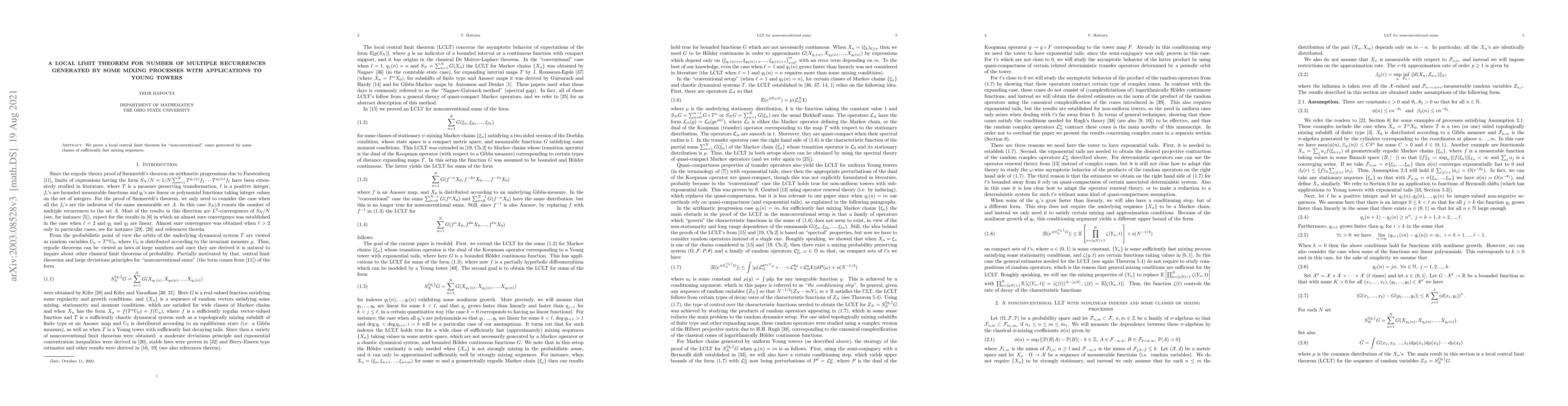 Summary: This paper establishes a local central limit theorem for nonconventional sums arising from fast mixing sequences, with implications for the study of Young towers. The results provide insights into the statistical behavior of multiple recurrences in mixing processes.