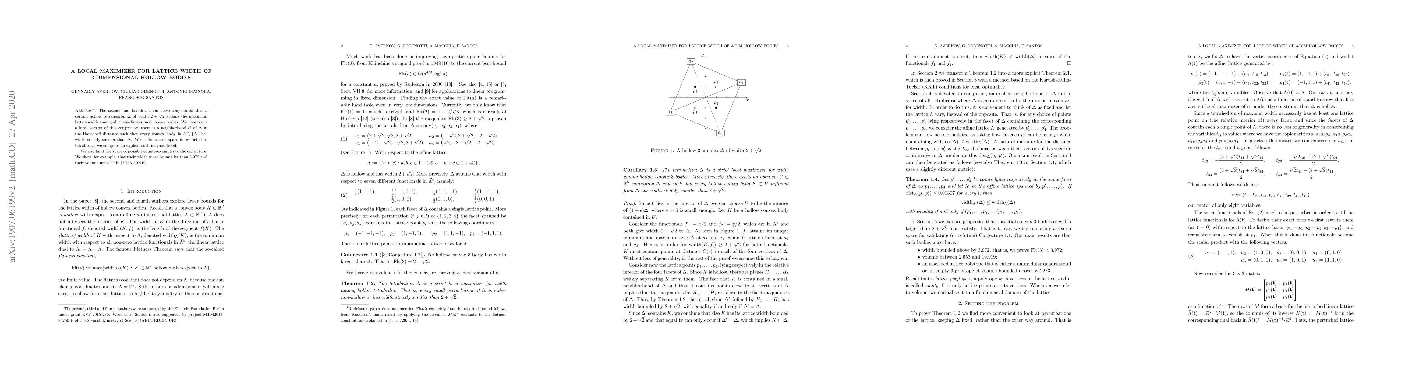 This research paper proves a local maximizer for lattice width in 3D hollow bodies, confirming a conjecture about the maximum width of certain tetrahedra.
