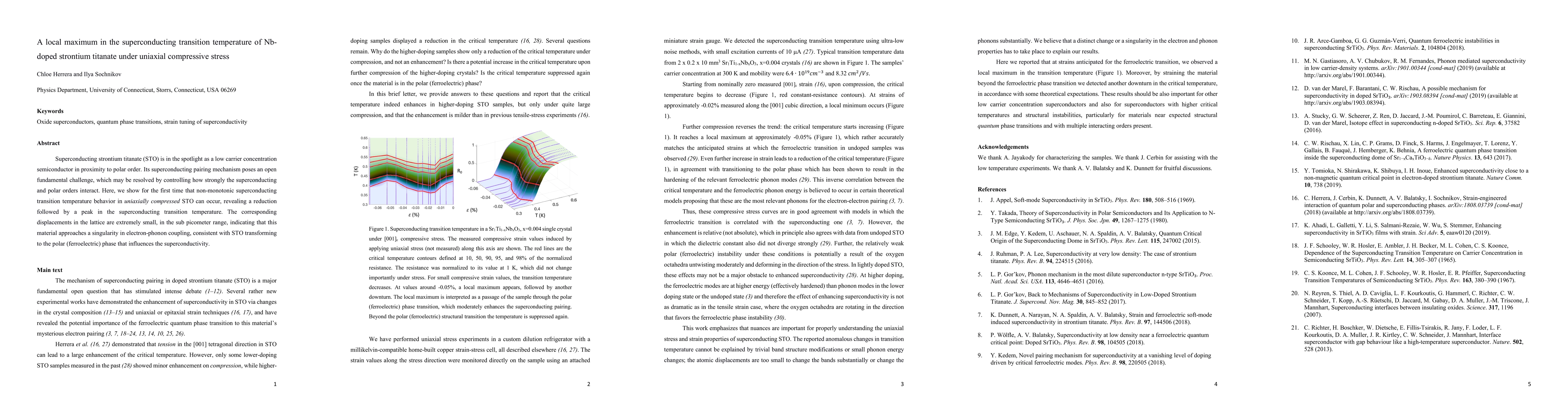 This study reveals a non-monotonic behavior in the superconducting transition temperature of Nb-doped strontium titanate under uniaxial compressive stress, showing a peak after an initial reduction. This suggests a singularity in electron-phonon coupling linked to the material's transition to a polar phase.
