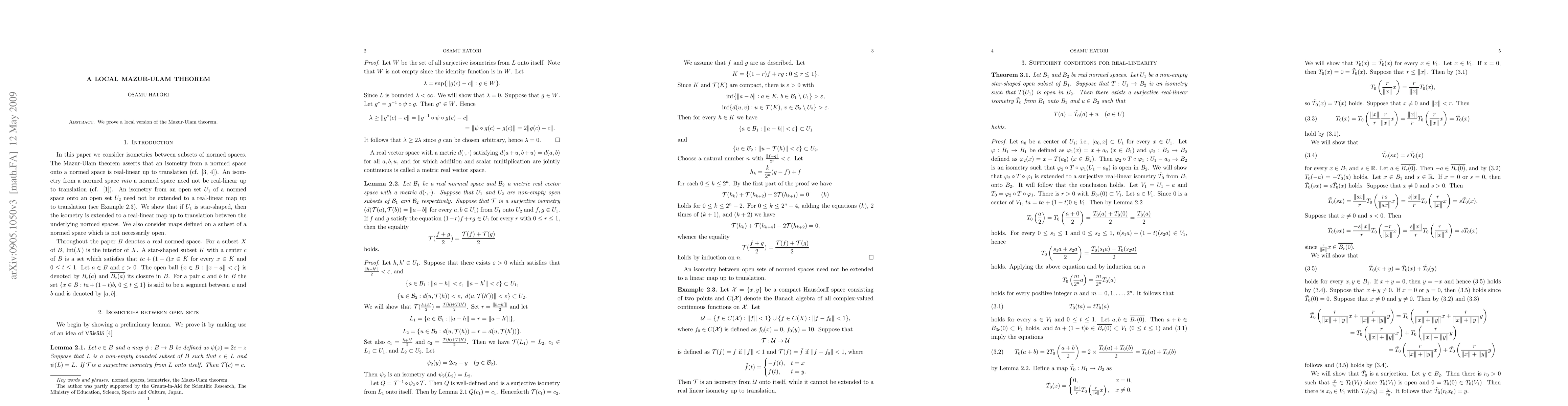 Summary: This paper establishes a local variant of the Mazur-Ulam theorem, demonstrating that every normed vector space over the real or complex numbers is locally isometric to a Banach space.