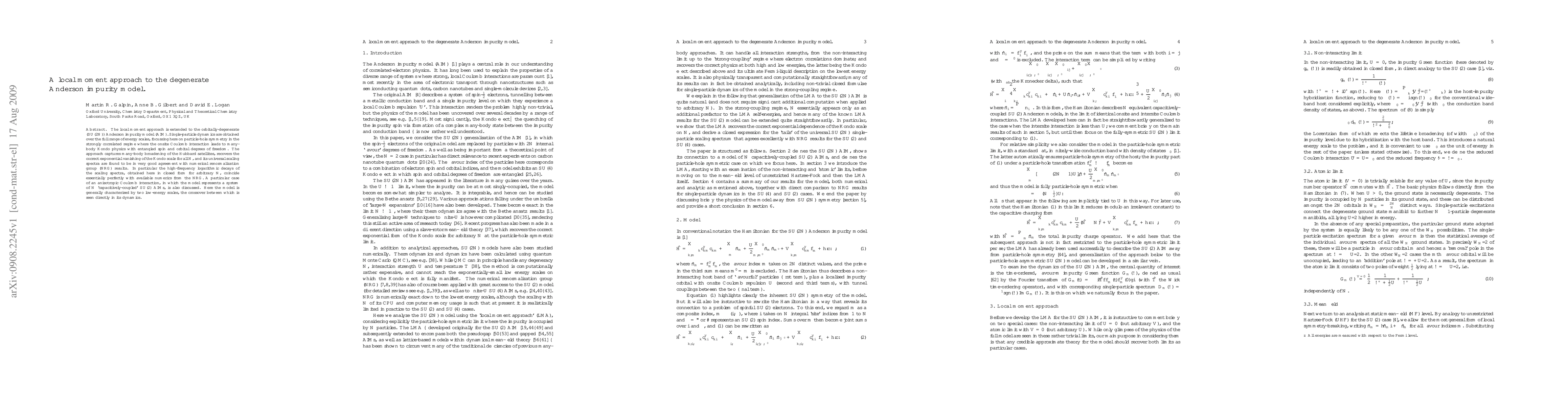 This paper extends the local moment approach to the orbitally-degenerate Anderson impurity model, revealing particle-hole symmetry and many-body Kondo physics, and achieving agreement with numerical renormalization group results. The approach also provides exact high-frequency logarithmic decays for the scaling spectra, and discusses a specific case of anisotropic Coulomb interaction.