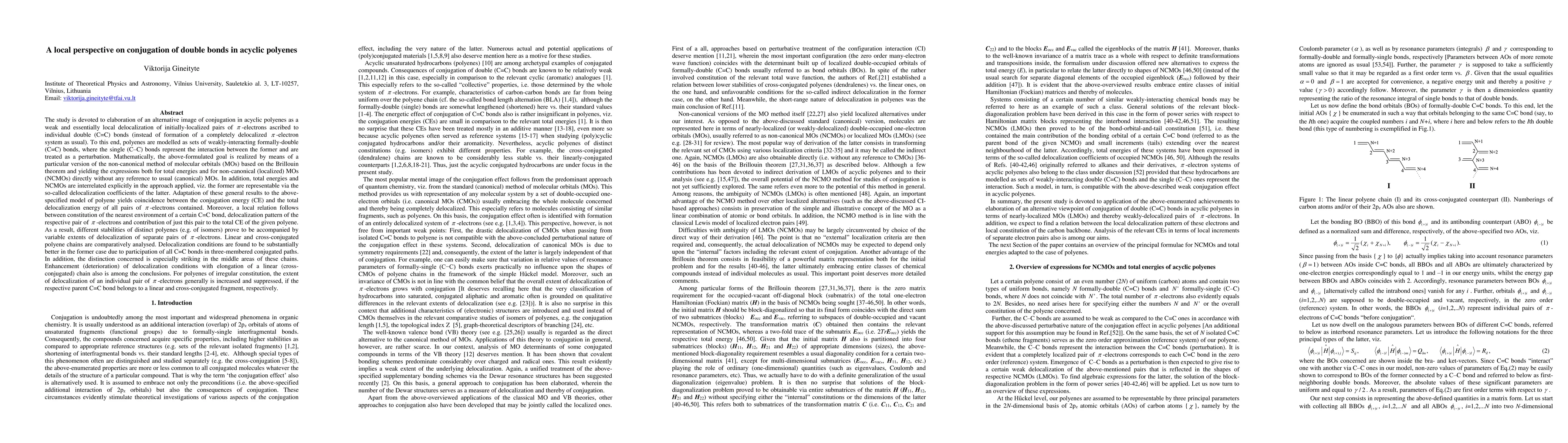 This study proposes a new view of conjugation in acyclic polyenes as a localized delocalization of pairs of electrons, not a global electron system. It reveals that the energy of conjugation is equivalent to the total delocalization energy of all pairs of electrons in a polyene chain.