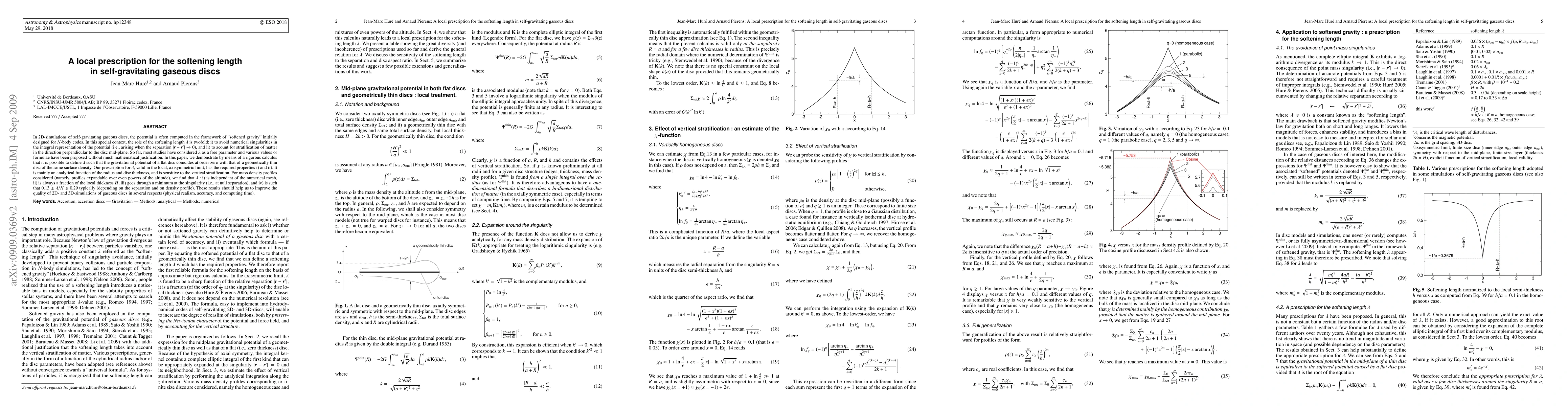 In 2D-simulations of self-gravitating gaseous discs, the potential is often computed in the framework of "softened gravity" initially designed for N-body codes. In this special context, the role of the softening length LAMBDA is twofold: i) to avoid numerical singularities in the integral representation of the potential (i.e., arising when the relative separation vanishes), and ii) to acount for stratification of matter in the direction perpendicular to the disc mid-plane. So far, most studies have considered LAMBDA as a free parameter and various values or formulae have been proposed without much mathematical justification. In this paper, we demonstrate by means of a rigorous calculus that it is possible to define LAMBDA such that the gravitational potential of a flat disc coincides at order zero with that of a geometically thin disc of the same surface density. Our prescription for LAMBDA, valid in the local, axisymmetric limit, has the required properties i) and ii). It is mainly an analytical function of the radius and disc thickness, and is sensitive to the vertical stratification. For mass density profiles considered (namely, profiles expandable over even powers of the altitude), we find that LAMBDA : i) is independant of the numerical mesh, ii) is always a fraction of the local thickness H, iii) goes through a minimum at the singularity (i.e., at null separation), and iv) is such that 0.13 < LAMBDA/H < 0.29 typically (depending on the separation and on density profile). These results should help us to improve the quality of 2D- and 3D-simulations of gaseous discs in several respects (physical realism, accuracy, and computing time).