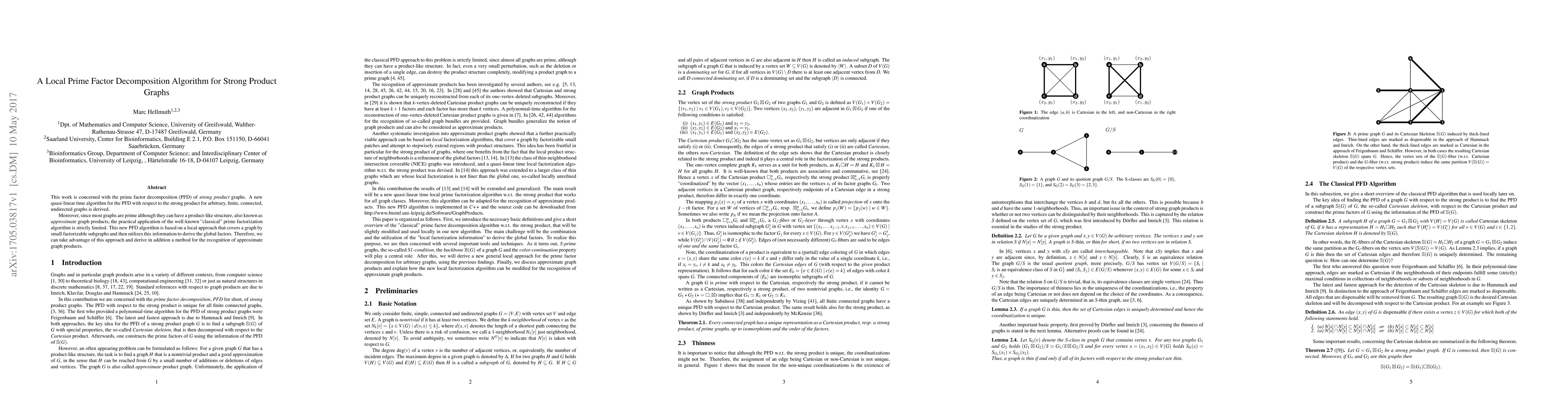 This work is concerned with the prime factor decomposition (PFD) of strong product graphs. A new quasi-linear time algorithm for the PFD with respect to the strong product for arbitrary, finite, connected, undirected graphs is derived. Moreover, since most graphs are prime although they can have a product-like structure, also known as approximate graph products, the practical application of the well-known "classical" prime factorization algorithm is strictly limited. This new PFD algorithm is based on a local approach that covers a graph by small factorizable subgraphs and then utilizes this information to derive the global factors. Therefore, we can take advantage of this approach and derive in addition a method for the recognition of approximate graph products.