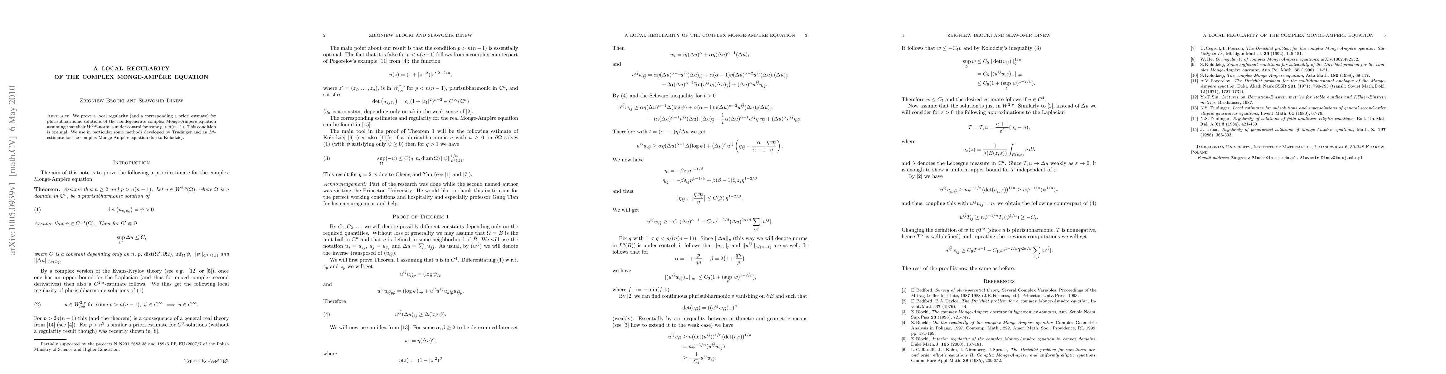 This paper establishes local regularity and a priori estimates for plurisubharmonic solutions of the nondegenerate complex Monge-Ampère equation under the condition that their $W^{2,p}$-norm is controlled for $p>n(n-1)$, demonstrating the optimality of this condition. The authors utilize methods from Trudinger and an $L^q$-estimate by Kołodziej.