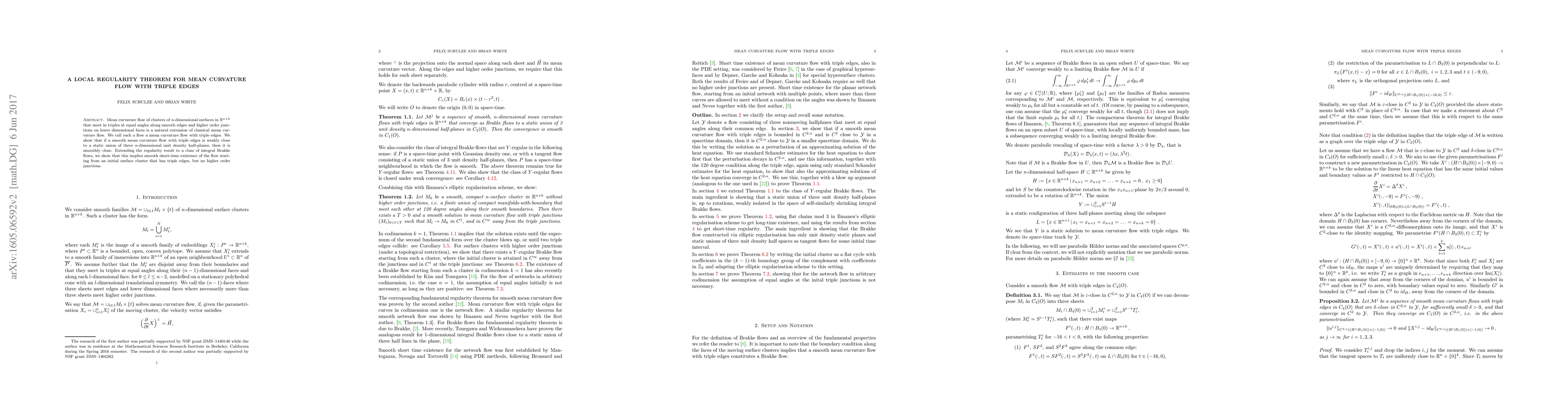 This paper proves a local regularity theorem for mean curvature flow with triple edges, demonstrating that if such a flow is close to a static union of three unit density half-planes, it remains smoothly close. The result extends to integral Brakke flows, ensuring smooth short-time existence for initial surface clusters with triple edges but no higher order junctions.