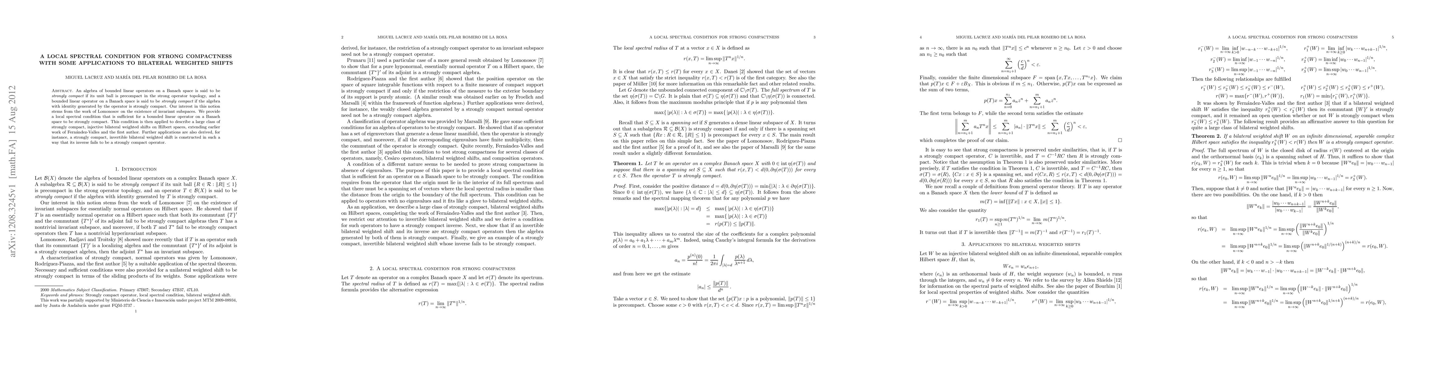 Summary: The paper introduces a local spectral condition for bounded linear operators to be strongly compact, extending its application to a class of injective bilateral weighted shifts. It also constructs a strongly compact invertible bilateral weighted shift where its inverse is not strongly compact.