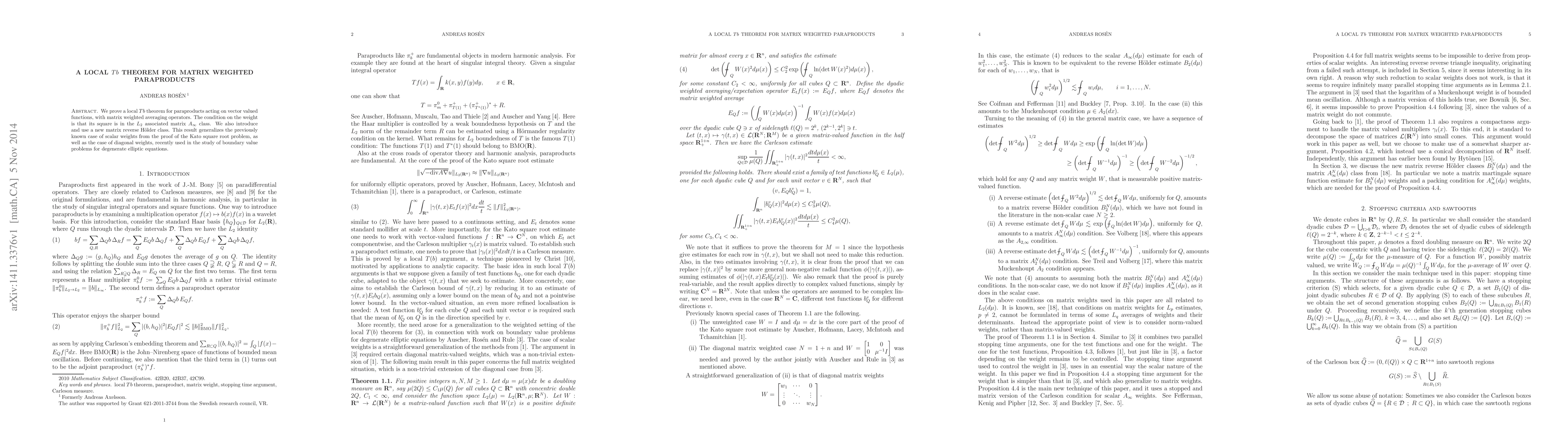 We prove a local $Tb$ theorem for paraproducts acting on vector valued functions, with matrix weighted averaging operators. The condition on the weight is that its square is in the $L_2$ associated matrix $A_\infty$ class. We also introduce and use a new matrix reverse H\"older class. This result generalizes the previously known case of scalar weights from the proof of the Kato square root problem, as well as the case of diagonal weights, recently used in the study of boundary value problems for degenerate elliptic equations.