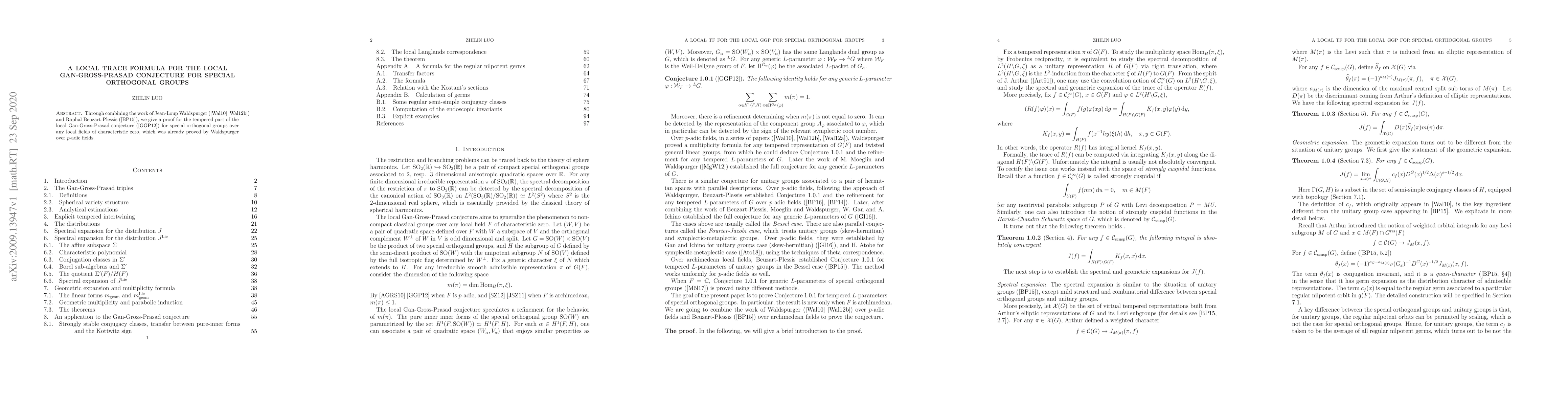 Through combining the work of Jean-Loup Waldspurger (\cite{waldspurger10} and \cite{waldspurgertemperedggp}) and Rapha\"el Beuzart-Plessis (\cite{beuzart2015local}), we give a proof for the tempered part of the local Gan-Gross-Prasad conjecture (\cite{ggporiginal}) for special orthogonal groups over any local fields of characteristic zero, which was already proved by Waldspurger over $p$-adic fields.
