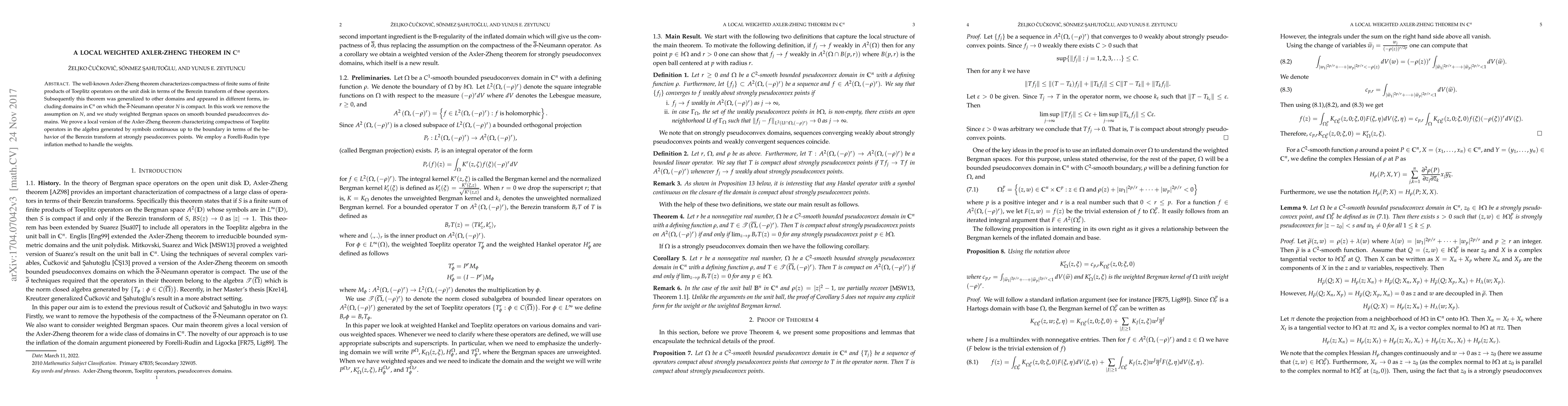 The well-known Axler-Zheng theorem characterizes compactness of finite sums of finite products of Toeplitz operators on the unit disk in terms of the Berezin transform of these operators. Subsequently this theorem was generalized to other domains and appeared in different forms, including domains in $\mathbb{C}^n$ on which the $\overline{\partial}$-Neumann operator $N$ is compact. In this work we remove the assumption on $N$, and we study weighted Bergman spaces on smooth bounded pseudoconvex domains. We prove a local version of the Axler-Zheng theorem characterizing compactness of Toeplitz operators in the algebra generated by symbols continuous up to the boundary in terms of the behavior of the Berezin transform at strongly pseudoconvex points. We employ a Forelli-Rudin type inflation method to handle the weights.