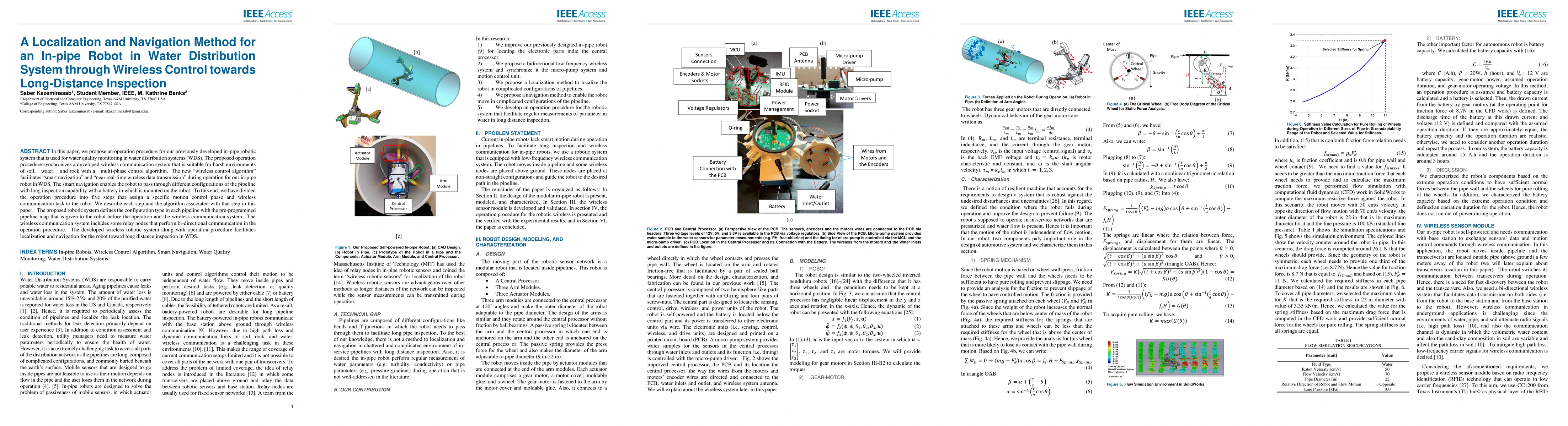 This paper proposes an operation procedure for an in-pipe robot used for water quality monitoring in water distribution systems, integrating a wireless communication system with a multi-phase control algorithm for smart navigation and real-time data transmission. The method enables the robot to perform long-distance inspections through various pipeline configurations.