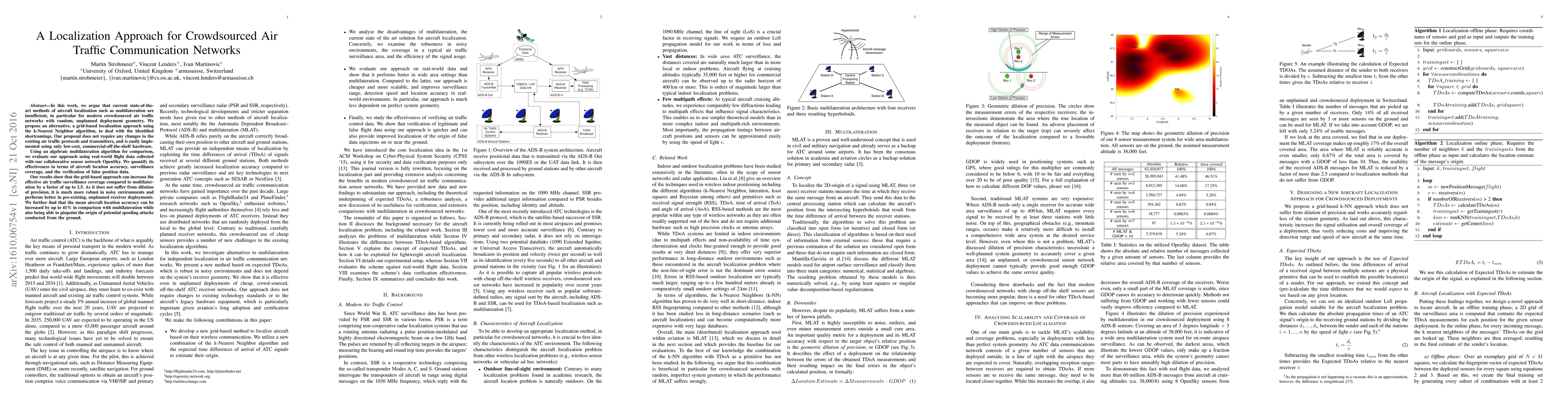 In this work, we argue that current state-of-the-art methods of aircraft localization such as multilateration are insufficient, in particular for modern crowdsourced air traffic networks with random, unplanned deployment geometry. We propose an alternative, a grid-based localization approach using the k-Nearest Neighbor algorithm, to deal with the identified shortcomings. Our proposal does not require any changes to the existing air traffic protocols and transmitters, and is easily implemented using only low-cost, commercial-off-the-shelf hardware. Using an algebraic multilateration algorithm for comparison, we evaluate our approach using real-world flight data collected with our collaborative sensor network OpenSky. We quantify its effectiveness in terms of aircraft location accuracy, surveillance coverage, and the verification of false position data. Our results show that the grid-based approach can increase the effective air traffic surveillance coverage compared to multilateration by a factor of up to 2.5. As it does not suffer from dilution of precision, it is much more robust in noisy environments and performs better in pre-existing, unplanned receiver deployments. We further find that the mean aircraft location accuracy can be increased by up to 41% in comparison with multilateration while also being able to pinpoint the origin of potential spoofing attacks conducted from the ground.