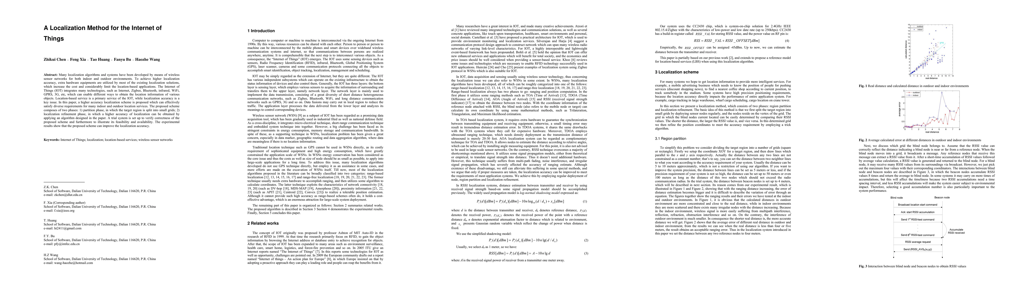 Many localization algorithms and systems have been developed by means of wireless sensor networks for both indoor and outdoor environments. To achieve higher localization accuracy, extra hardware equipments are utilized by most of the existing localization solutions, which increase the cost and considerably limit the location-based applications. The Internet of Things (IOT) integrates many technologies, such as Internet, Zigbee, Bluetooth, infrared, WiFi, GPRS, 3G, etc, which can enable different ways to obtain the location information of various objects. Location-based service is a primary service of the IOT, while localization accuracy is a key issue. In this paper, a higher accuracy localization scheme is proposed which can effectively satisfy diverse requirements for many indoor and outdoor location services. The proposed scheme composes of two phases: 1) partition phase, in which the target region is split into small grids; 2) localization refinement phase, in which a higher accuracy of localization can be obtained by applying an algorithm designed in the paper. A trial system is set up to verify correctness of the proposed scheme and furthermore to illustrate its feasibility and availability. The experimental results show that the proposed scheme can improve the localization accuracy.