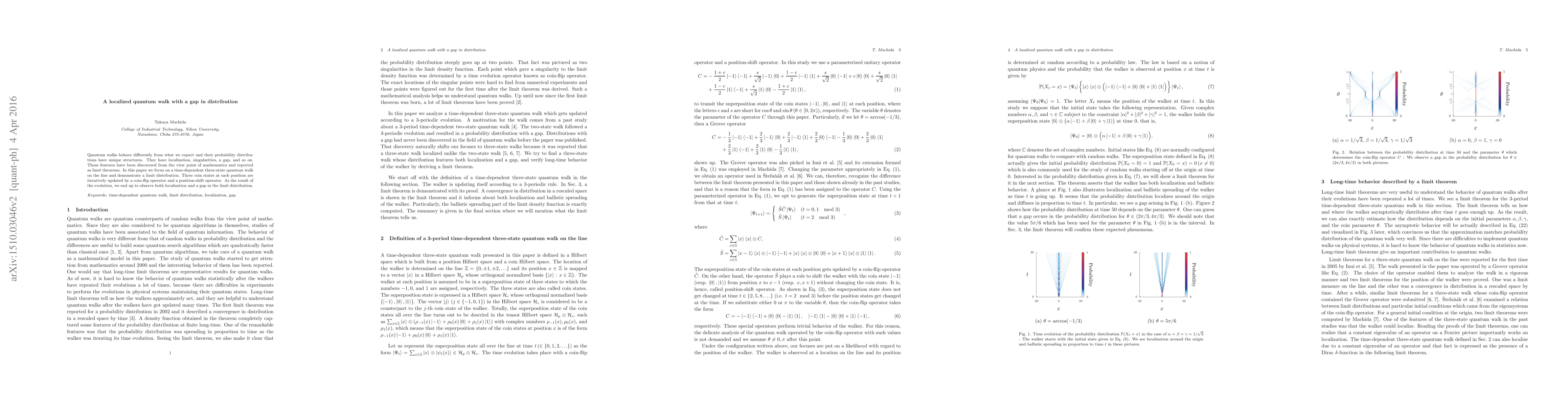 Researchers demonstrate a limit distribution for a time-dependent three-state quantum walk on a line, showing both localization and a gap in the probability distribution.