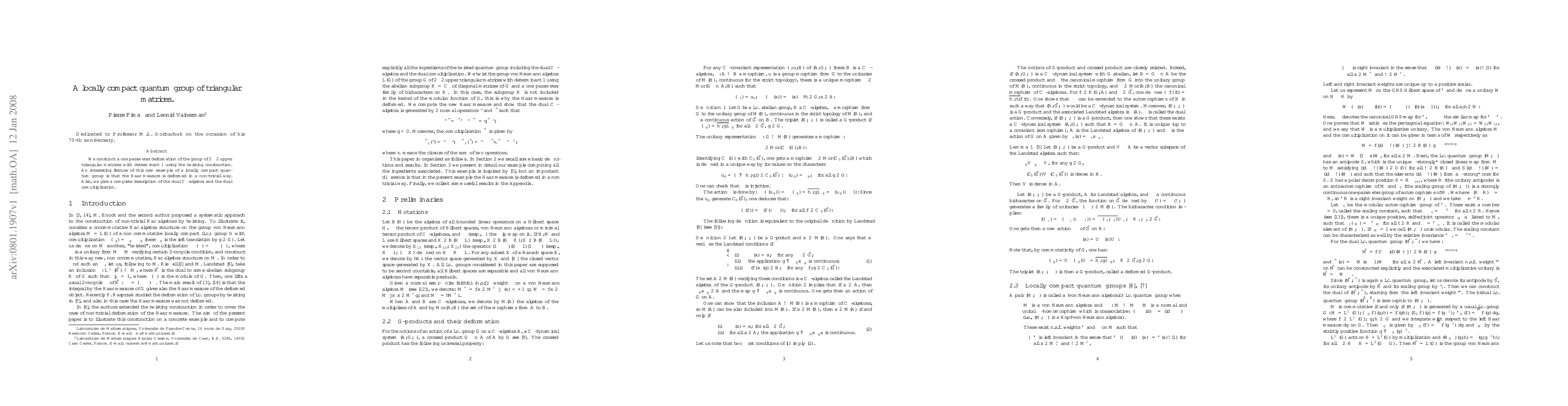 We construct a one parameter deformation of the group of $2\times 2$ upper triangular matrices with determinant 1 using the twisting construction. An interesting feature of this new example of a locally compact quantum group is that the Haar measure is deformed in a non-trivial way. Also, we give a complete description of the dual $\cs$-algebra and the dual comultiplication.