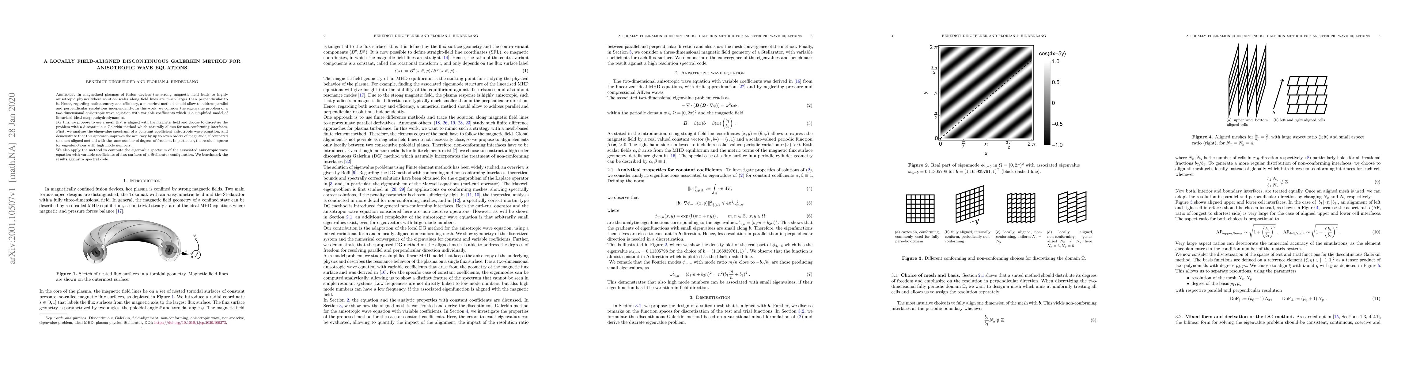 In magnetized plasmas of fusion devices the strong magnetic field leads to highly anisotropic physics where solution scales along field lines are much larger than perpendicular to it. Hence, regarding both accuracy and efficiency, a numerical method should allow to address parallel and perpendicular resolutions independently. In this work, we consider the eigenvalue problem of a two-dimensional anisotropic wave equation with variable coefficients which is a simplified model of linearized ideal magnetohydrodynamics. For this, we propose to use a mesh that is aligned with the magnetic field and choose to discretize the problem with a discontinuous Galerkin method which naturally allows for non-conforming interfaces. First, we analyze the eigenvalue spectrum of a constant coefficient anisotropic wave equation, and demonstrate that this approach improves the accuracy by up to seven orders of magnitude, if compared to a non-aligned method with the same number of degrees of freedom. In particular, the results improve for eigenfunctions with high mode numbers. We also apply the method to compute the eigenvalue spectrum of the associated anisotropic wave equation with variable coefficients of flux surfaces of a Stellarator configuration. We benchmark the results against a spectral code.