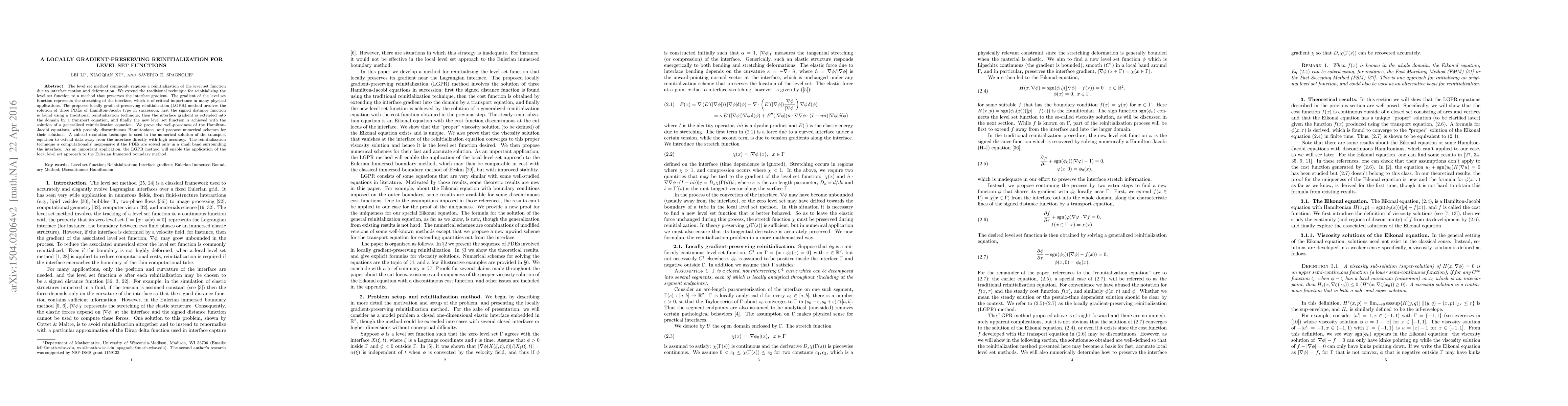 This paper proposes a locally gradient-preserving reinitialization (LGPR) method for level set functions that maintains interface gradient during reinitialization, crucial for physical applications. The method involves solving three Hamilton-Jacobi PDEs and uses a subcell resolution technique for high accuracy, enabling its application to the Eulerian Immersed boundary method.