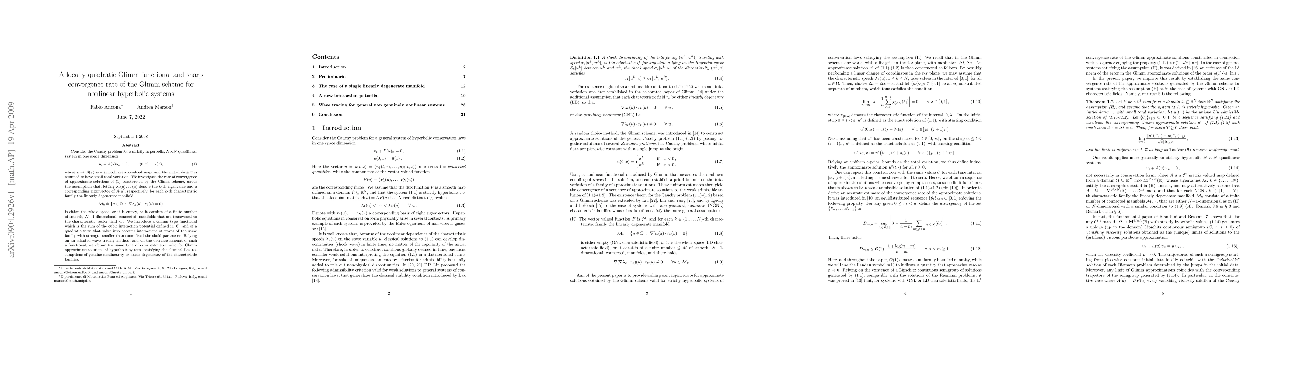 This paper investigates the convergence rate of the Glimm scheme for solving strictly hyperbolic quasilinear systems, introducing a locally quadratic Glimm functional. It establishes sharp error estimates for the scheme under conditions ensuring linear degeneracy or transversality of characteristic families.