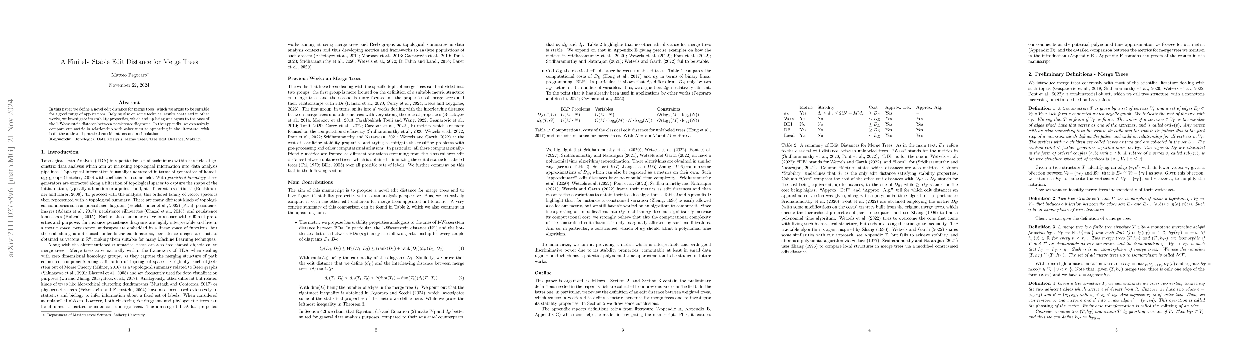 This paper introduces a new edit distance for merge trees, comparing it with existing metrics and analyzing its properties. It explores the geodesic structure and local parametrizations, aiming to understand how different strata of merge trees interact, which is crucial for advancing merge tree analysis techniques.