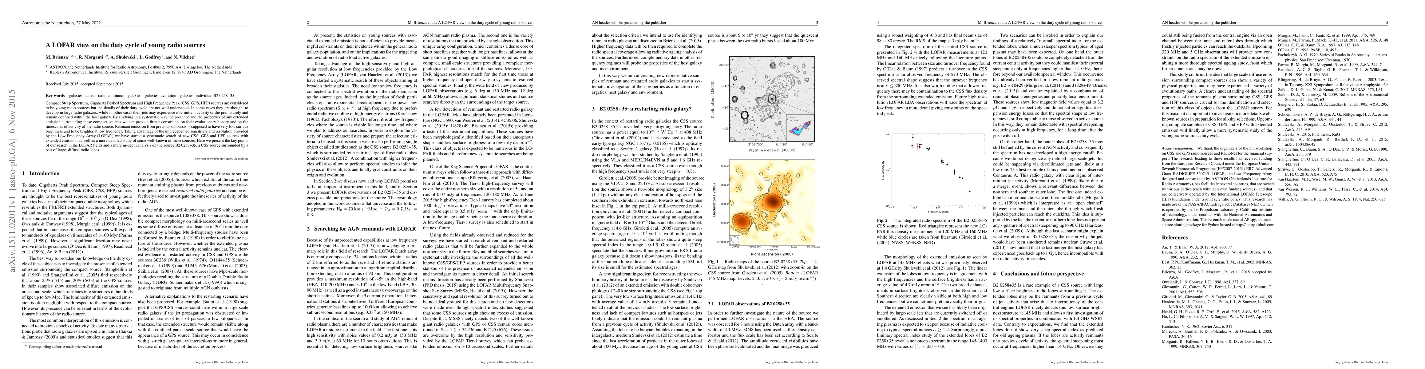This paper investigates the duty cycle of young radio sources using LOFAR observations, focusing on CSS, GPS, and HFP sources. It presents findings from a systematic search for extended emission, providing insights into their evolutionary history and activity timescales, with a detailed analysis of the CSS source B2 0258+35.