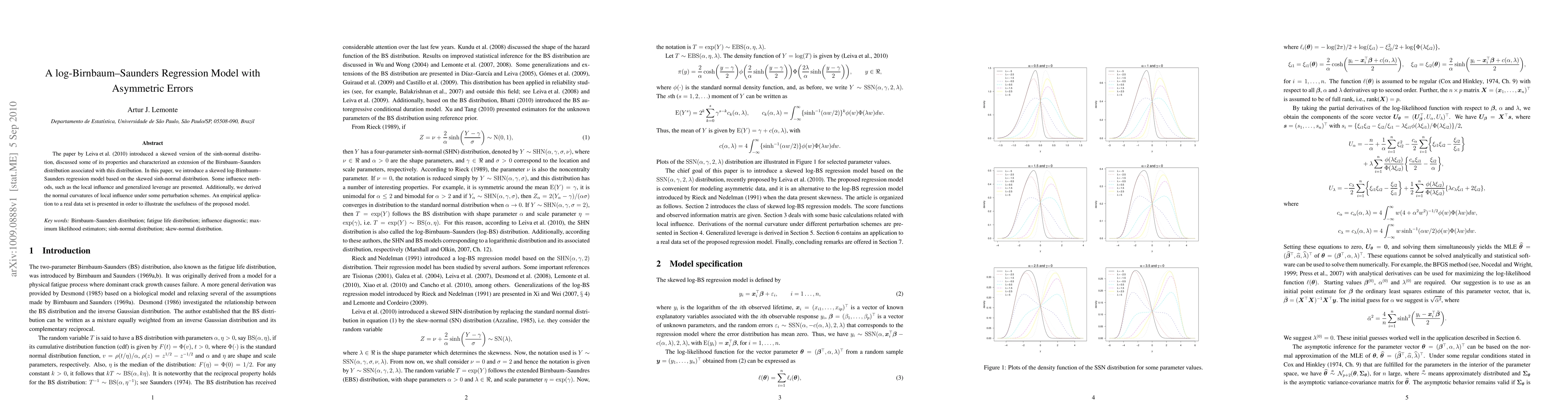 This paper proposes a skewed log-Birnbaum-Saunders regression model based on the skewed sinh-normal distribution, including influence methods like local influence and generalized leverage. An empirical application demonstrates the model's utility.