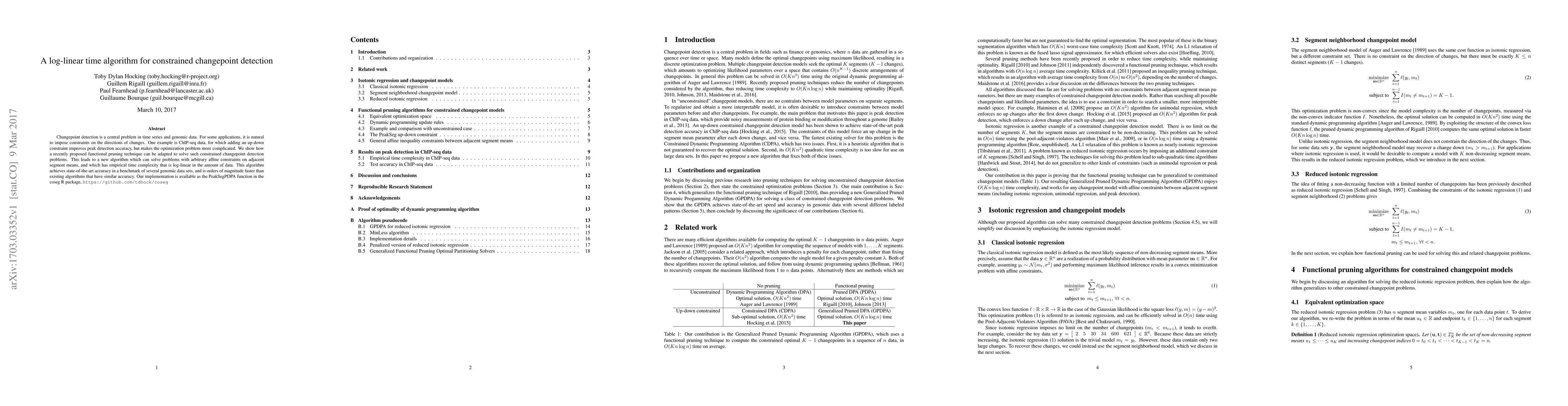 This paper presents a log-linear time algorithm for constrained changepoint detection, particularly useful for genomic data with up-down constraints. It adapts a functional pruning technique to efficiently solve problems with arbitrary affine constraints, achieving state-of-the-art accuracy and significantly faster performance compared to existing methods.