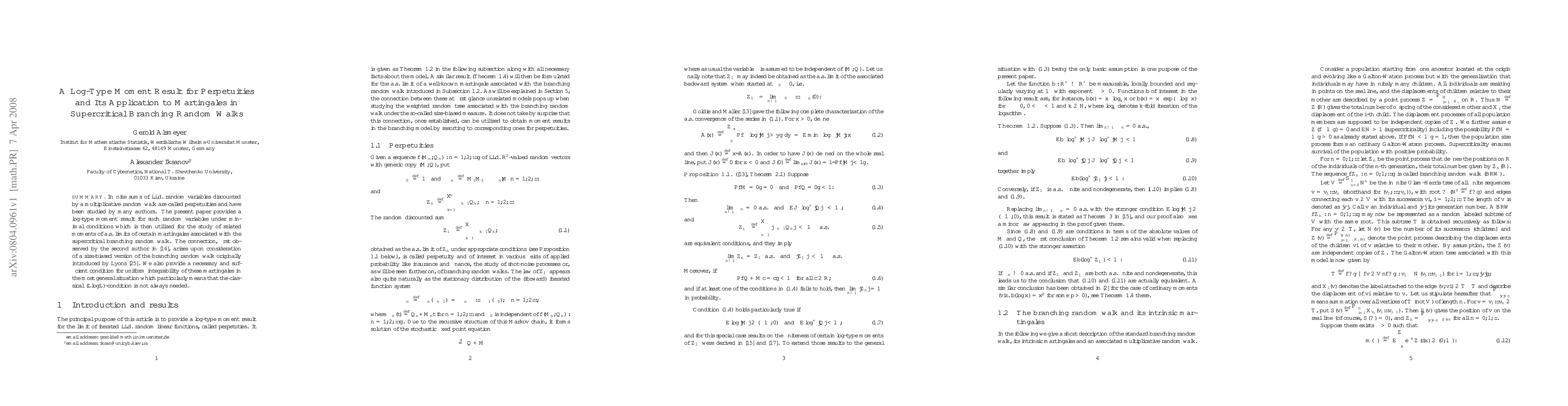 The paper provides a log-type moment result for perpetuities in branching random walks, offering a new approach to studying related martingales without the need for the classical (LlogL)-condition.