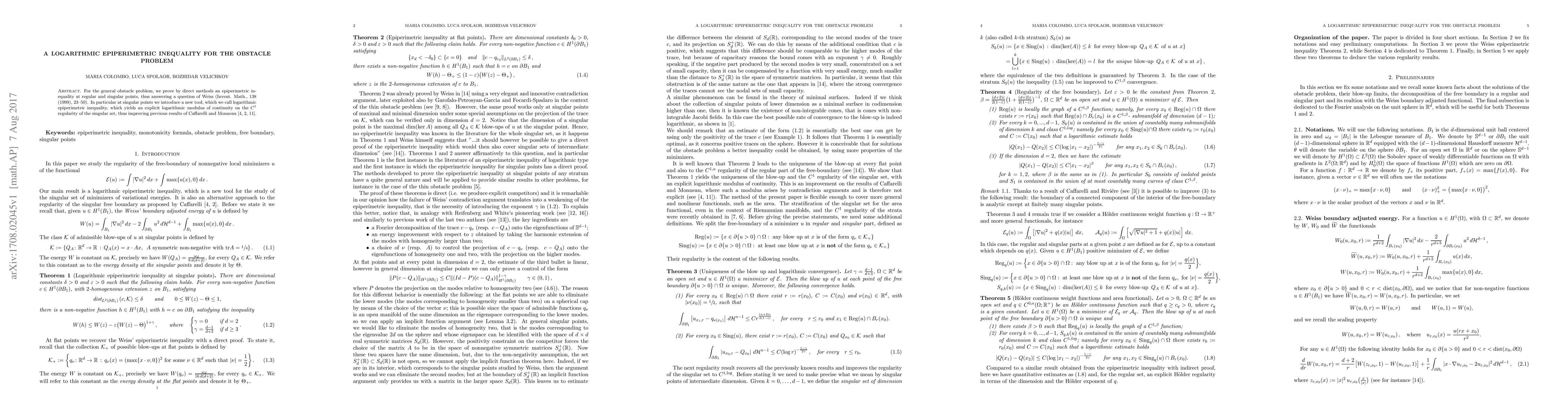 The paper proves an epiperimetric inequality for the obstacle problem, answering a question of Weiss, and introduces a new tool that yields an explicit logarithmic modulus of continuity on the C^1 regularity of singular points.