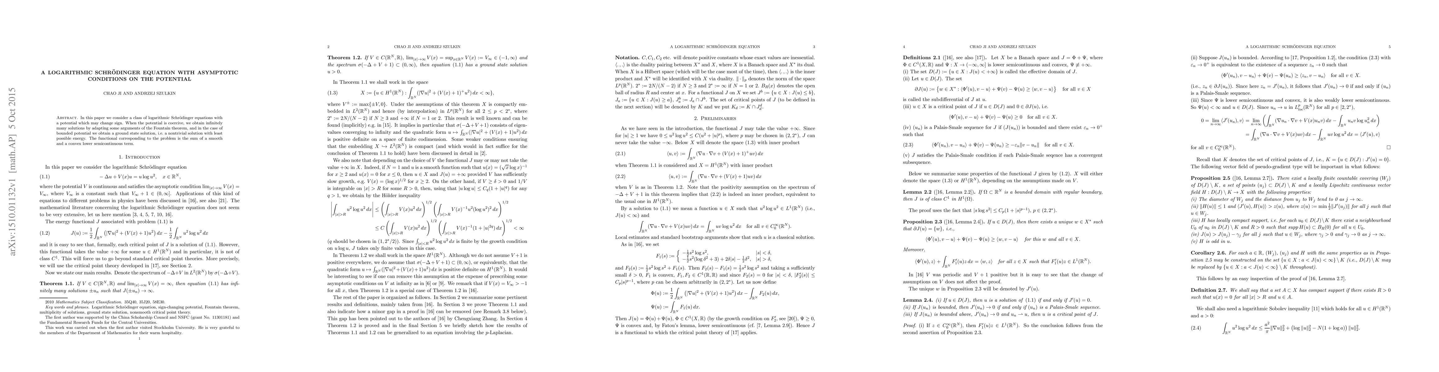 In this paper we consider a class of logarithmic Schr\"{o}dinger equations with a potential which may change sign. When the potential is coercive, we obtain infinitely many solutions by adapting some arguments of the Fountain theorem, and in the case of bounded potential we obtain a ground state solution, i.e. a nontrivial solution with least possible energy. The functional corresponding to the problem is the sum of a smooth and a convex lower semicontinuous term.