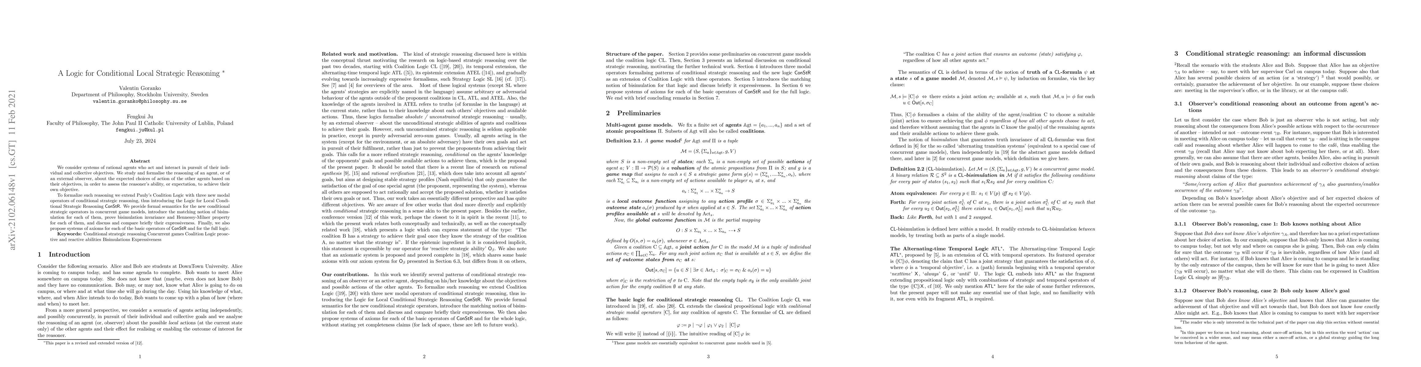 This paper formalizes strategic reasoning in systems of rational agents using an extended Coalition Logic, termed Logic for Local Conditional Strategic Reasoning (ConStR). It introduces new modal operators for conditional reasoning, provides formal semantics, and discusses the logic's expressiveness, bisimulation invariance, and axiom systems.