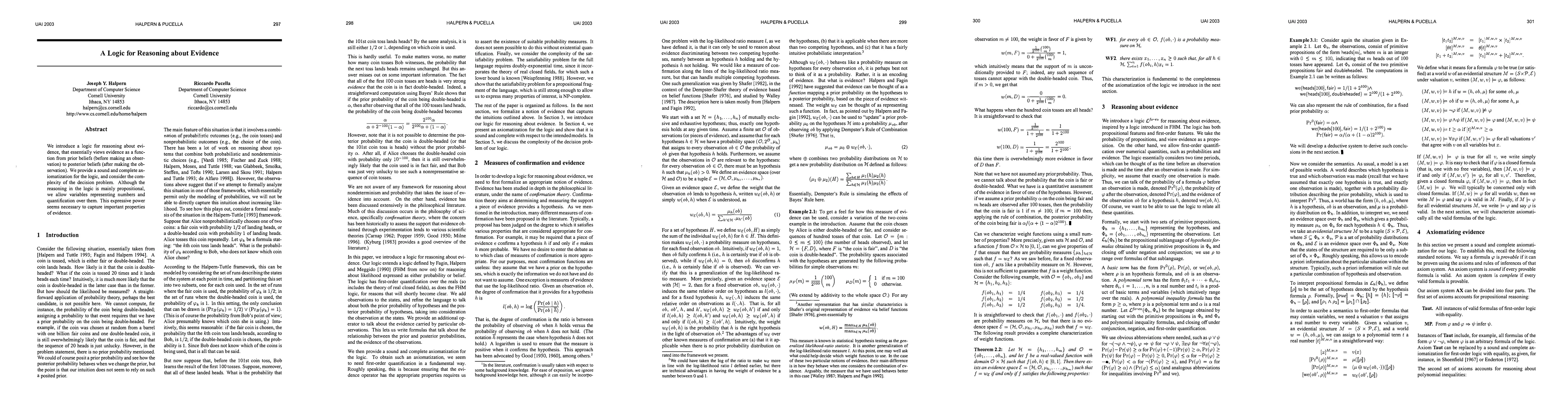 Researchers introduce a logic for reasoning about evidence, which views evidence as a function from prior beliefs to posterior beliefs, allowing variables to represent numbers and quantification. The logic provides a sound and complete axiomatization for reasoning about evidence.