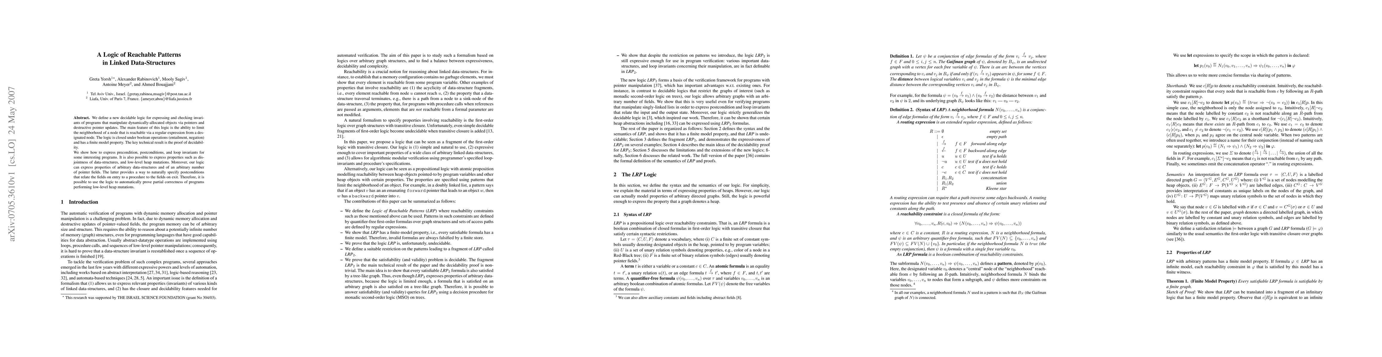 We define a new decidable logic for expressing and checking invariants of programs that manipulate dynamically-allocated objects via pointers and destructive pointer updates. The main feature of this logic is the ability to limit the neighborhood of a node that is reachable via a regular expression from a designated node. The logic is closed under boolean operations (entailment, negation) and has a finite model property. The key technical result is the proof of decidability. We show how to express precondition, postconditions, and loop invariants for some interesting programs. It is also possible to express properties such as disjointness of data-structures, and low-level heap mutations. Moreover, our logic can express properties of arbitrary data-structures and of an arbitrary number of pointer fields. The latter provides a way to naturally specify postconditions that relate the fields on entry to a procedure to the fields on exit. Therefore, it is possible to use the logic to automatically prove partial correctness of programs performing low-level heap mutations.