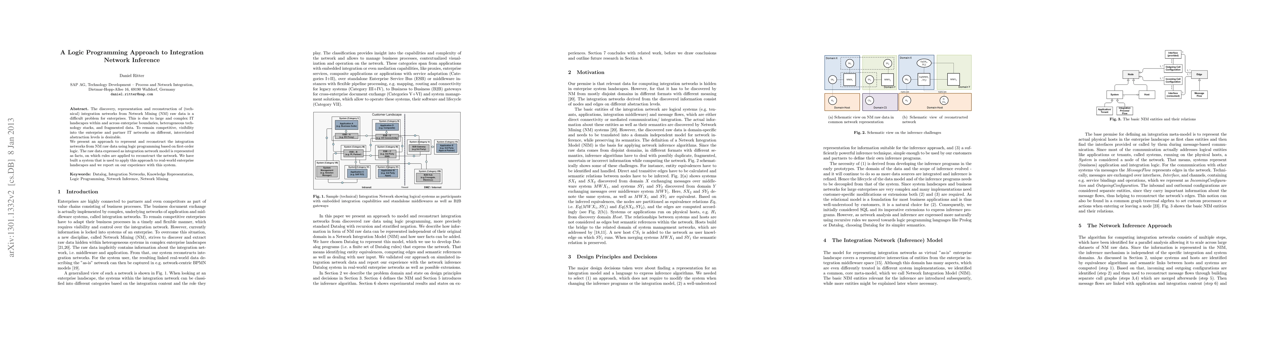 The discovery, representation and reconstruction of (technical) integration networks from Network Mining (NM) raw data is a difficult problem for enterprises. This is due to large and complex IT landscapes within and across enterprise boundaries, heterogeneous technology stacks, and fragmented data. To remain competitive, visibility into the enterprise and partner IT networks on different, interrelated abstraction levels is desirable. We present an approach to represent and reconstruct the integration networks from NM raw data using logic programming based on first-order logic. The raw data expressed as integration network model is represented as facts, on which rules are applied to reconstruct the network. We have built a system that is used to apply this approach to real-world enterprise landscapes and we report on our experience with this system.