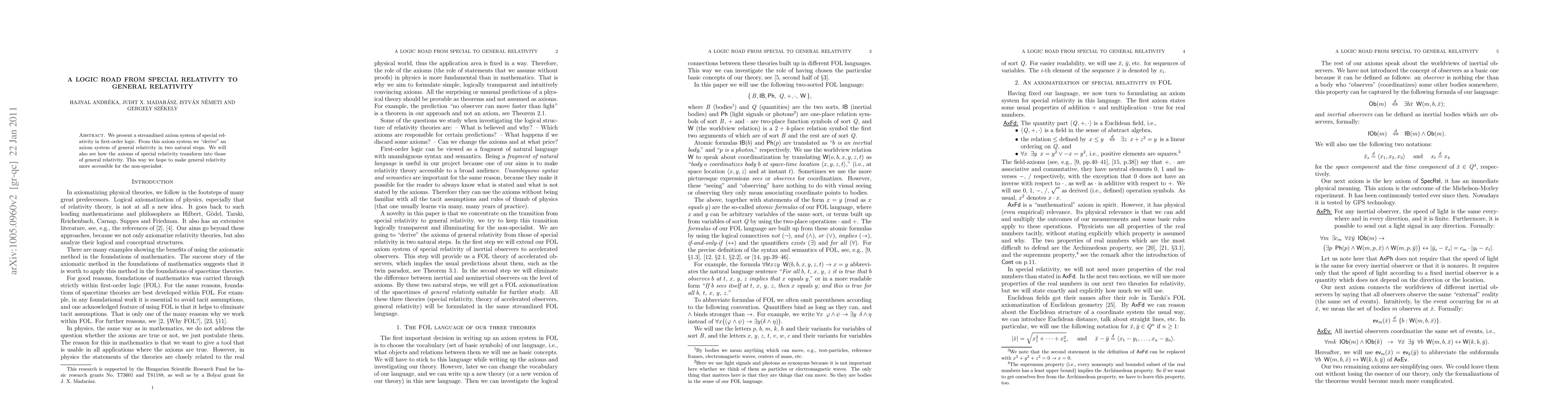 We present a streamlined axiom system of special relativity in first-order logic. From this axiom system we "derive" an axiom system of general relativity in two natural steps. We will also see how the axioms of special relativity transform into those of general relativity. This way we hope to make general relativity more accessible for the non-specialist.