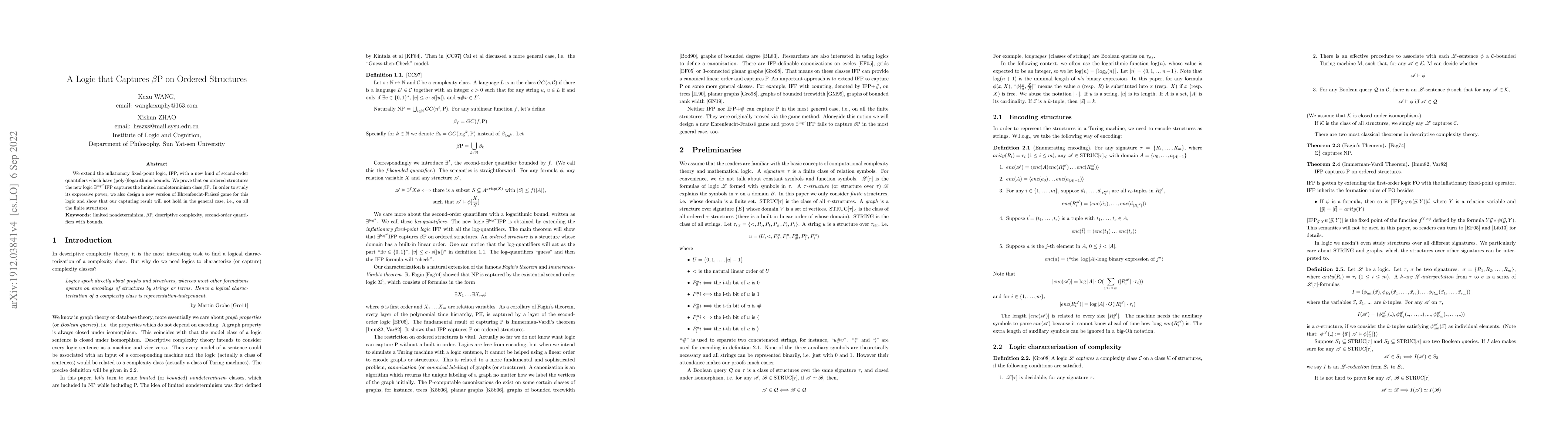 This paper extends the inflationary fixed-point logic, IFP, with new second-order quantifiers to form $\exists^{\log^{\omega}}\text{IFP}$, which captures the complexity class $\beta\text{P}$ on ordered structures. It also introduces a new Ehrenfeucht-Fraisse game for this logic, demonstrating that the capturing result does not apply to all finite structures.