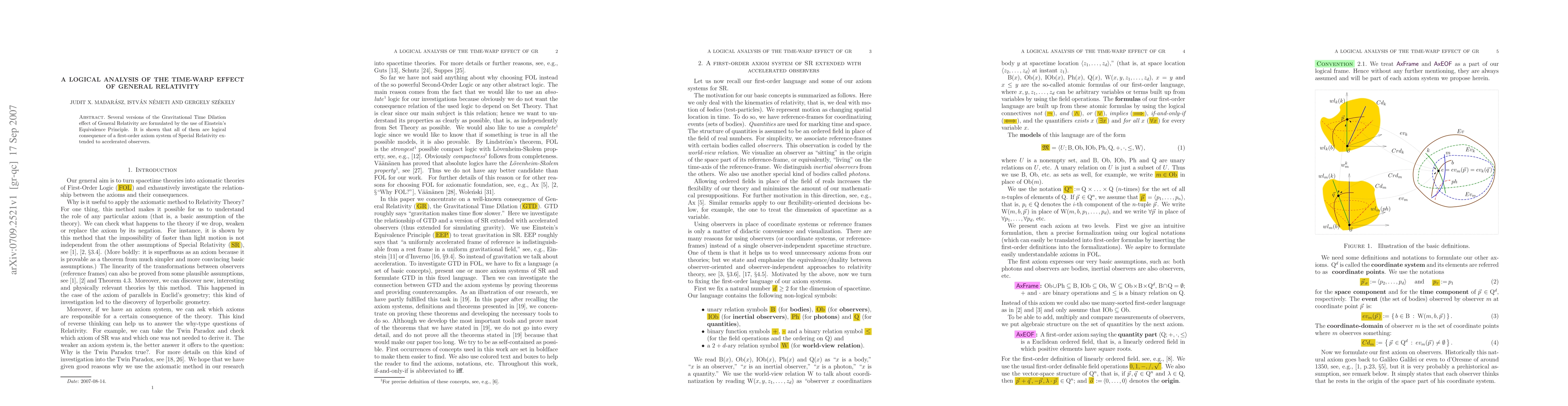 This paper analyzes various manifestations of gravitational time dilation in General Relativity, demonstrating that they logically follow from an extended first-order axiom system of Special Relativity applied to accelerated observers, grounded in Einstein's Equivalence Principle.