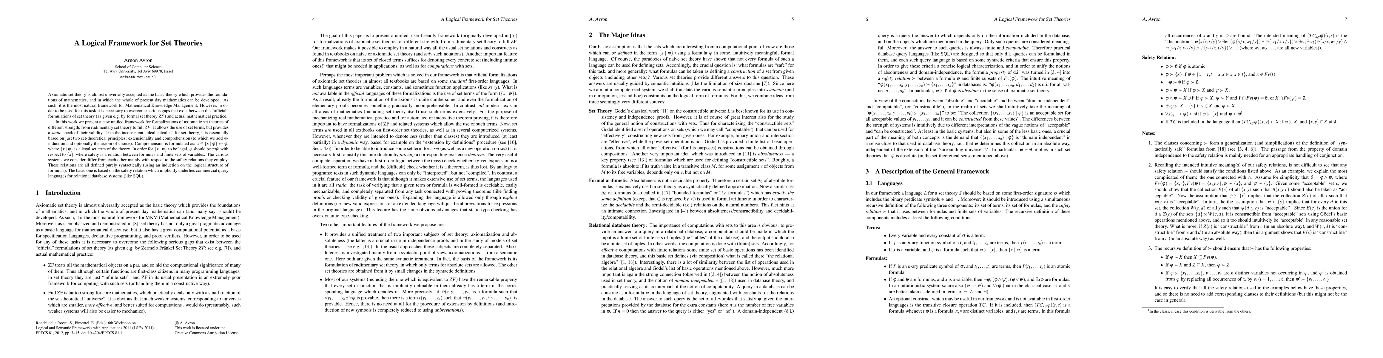 Axiomatic set theory is almost universally accepted as the basic theory which provides the foundations of mathematics, and in which the whole of present day mathematics can be developed. As such, it is the most natural framework for Mathematical Knowledge Management. However, in order to be used for this task it is necessary to overcome serious gaps that exist between the "official" formulations of set theory (as given e.g. by formal set theory ZF) and actual mathematical practice. In this work we present a new unified framework for formalizations of axiomatic set theories of different strength, from rudimentary set theory to full ZF. It allows the use of set terms, but provides a static check of their validity.