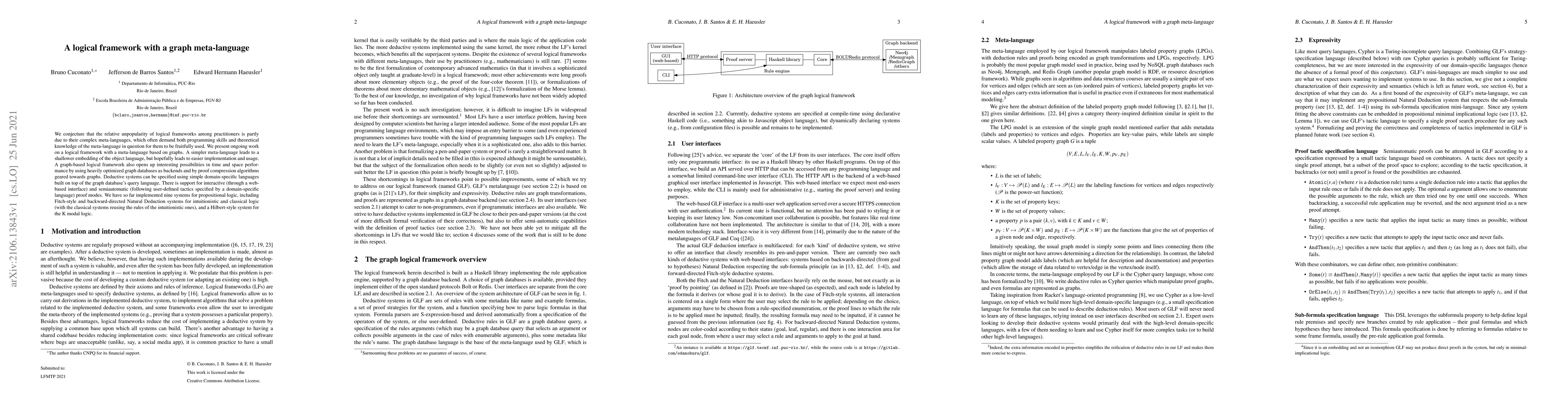 A new logical framework uses graph meta-language to simplify implementation and usage, offering potential benefits in time and space performance. The framework supports interactive and semiautomatic proof modes for various logics.