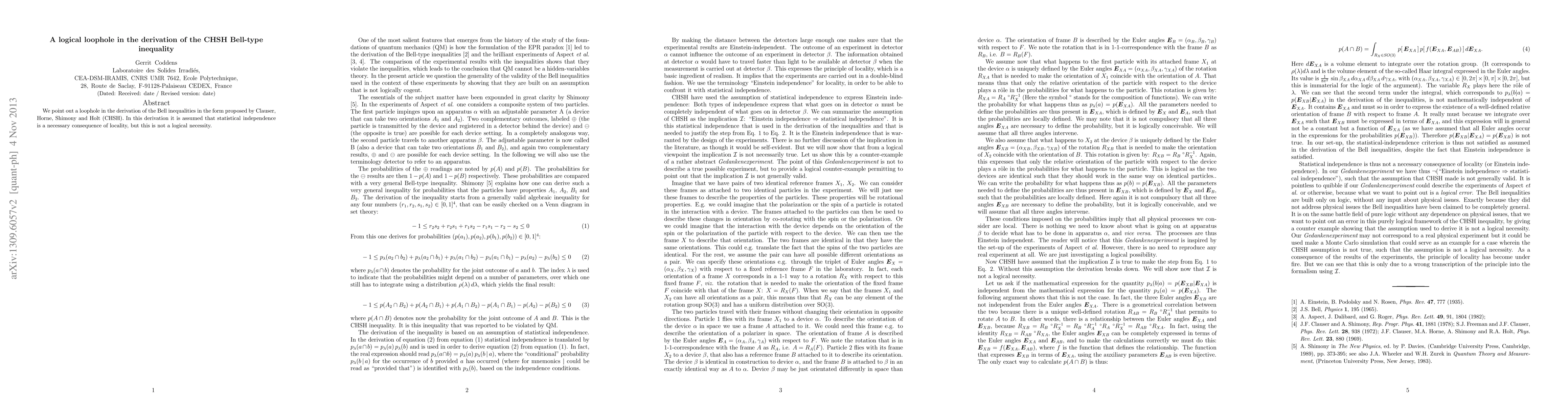 We point out a loophole in the derivation of the Bell inequalities in the form proposed by Clauser, Horne, Shimony and Holt (CHSH). In this derivation it is assumed that statistical independence is a necessary consequence of locality, but this is not a logical necessity.