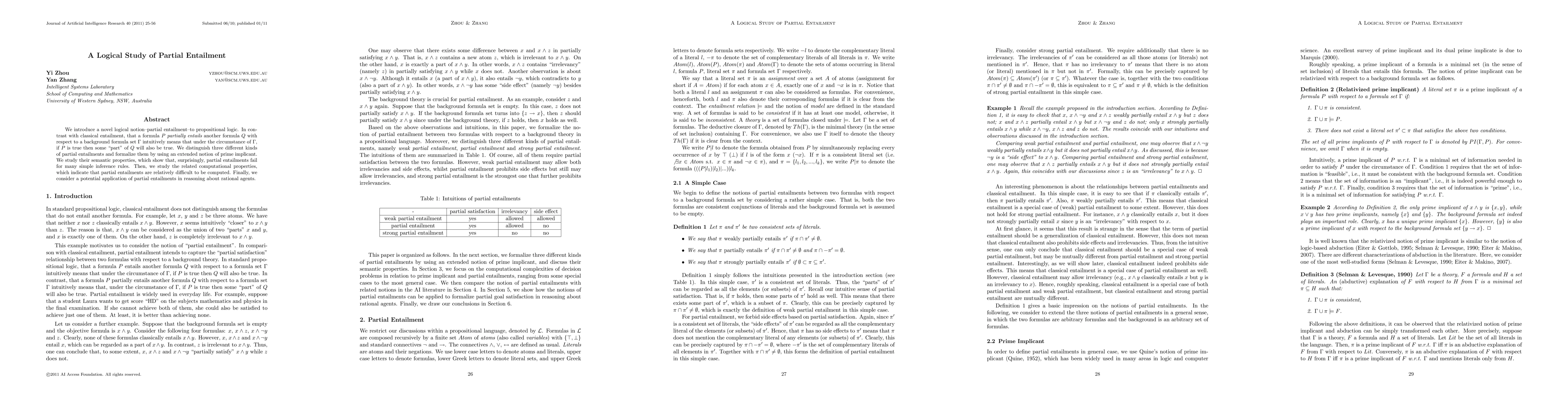 This paper introduces a new logical concept—partial entailment—in propositional logic, which suggests that if one formula is true, part of another formula will also be true given a background set. The paper formalizes three types of partial entailments using prime implicants, discusses their semantic properties, and finds they defy many classical inference rules. It also highlights the computational difficulty of determining partial entailments and proposes their application in reasoning about rational agents.