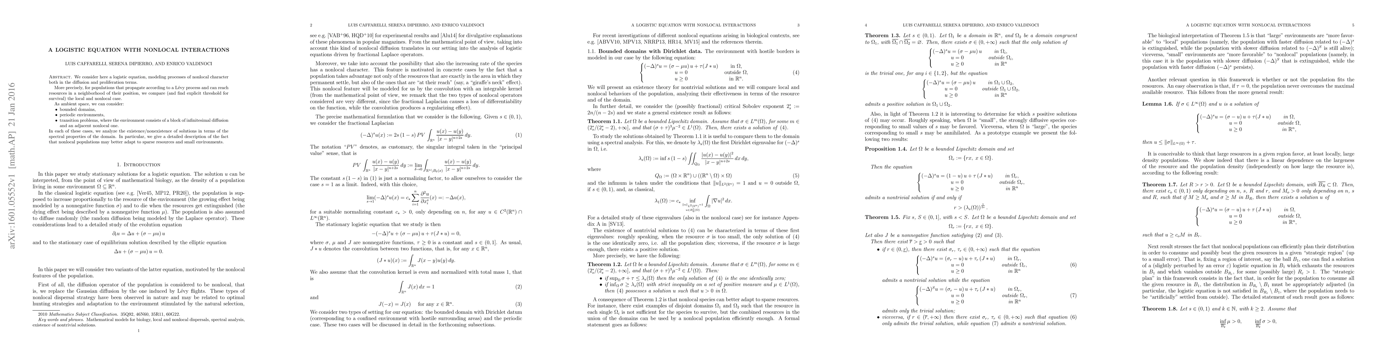We consider here a logistic equation, modeling processes of nonlocal character both in the diffusion and proliferation terms. More precisely, for populations that propagate according to a L\'evy process and can reach resources in a neighborhood of their position, we compare (and find explicit threshold for survival) the local and nonlocal case. As ambient space, we can consider: bounded domains, periodic environments, and transition problems, where the environment consists of a block of infinitesimal diffusion and an adjacent nonlocal one. In each of these cases, we analyze the existence/nonexistence of solutions in terms of the spectral properties of the domain. In particular, we give a detailed description of the fact that nonlocal populations may better adapt to sparse resources and small environments.