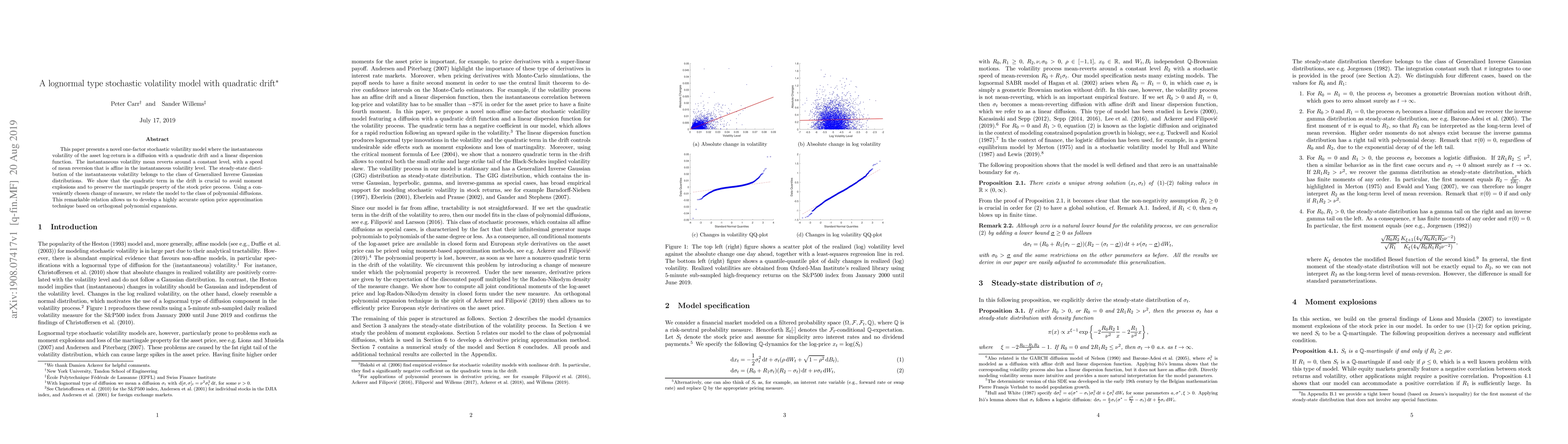 This paper presents a novel one-factor stochastic volatility model where the instantaneous volatility of the asset log-return is a diffusion with a quadratic drift and a linear dispersion function. The instantaneous volatility mean reverts around a constant level, with a speed of mean reversion that is affine in the instantaneous volatility level. The steady-state distribution of the instantaneous volatility belongs to the class of Generalized Inverse Gaussian distributions. We show that the quadratic term in the drift is crucial to avoid moment explosions and to preserve the martingale property of the stock price process. Using a conveniently chosen change of measure, we relate the model to the class of polynomial diffusions. This remarkable relation allows us to develop a highly accurate option price approximation technique based on orthogonal polynomial expansions.