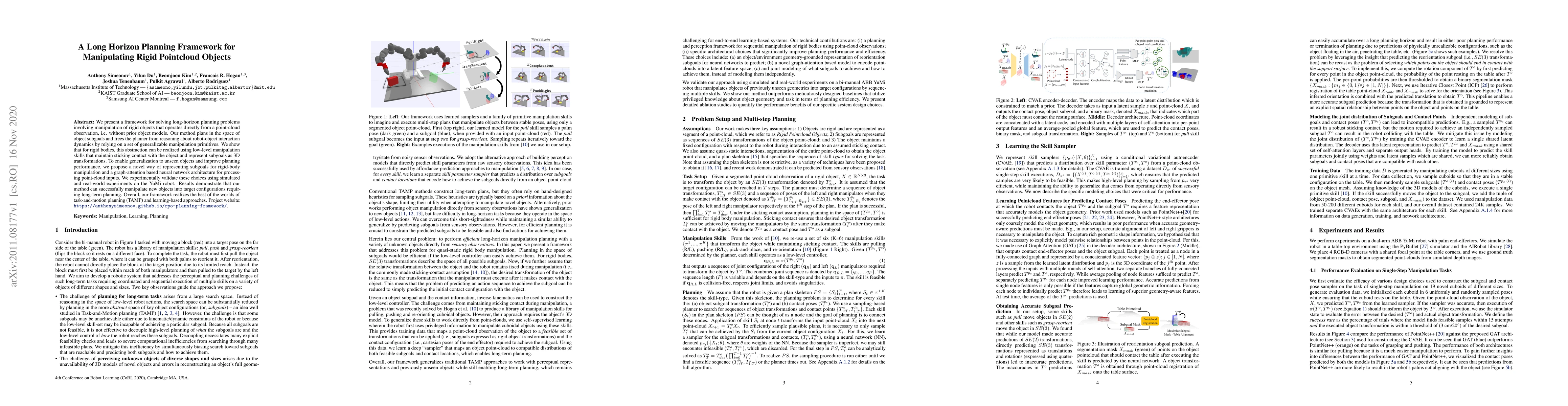This paper introduces a long-horizon planning framework for manipulating rigid point-cloud objects, planning through object subgoals without prior models, and utilizing a neural network for point-cloud processing. The method leverages generalizable manipulation primitives to generalize to new objects and improve planning efficiency, validated through both simulation and real-world experiments.